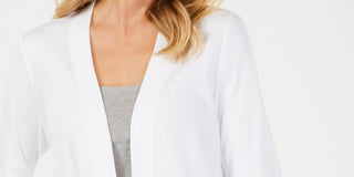 Karen Scott Cardigan feminino de algodão aconchegante, branco, tamanho pequeno grande