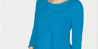 Top feminino Charter Club com acabamento em renda de algodão, azul, tamanho XX-G
