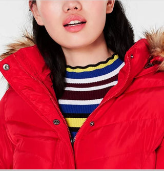 Casaco acolchoado com capuz e acabamento falso Madden Girl Junior, vermelho, tamanho X-S