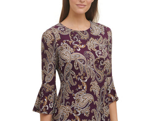 Vestido feminino Tommy Hilfiger com estampa Paisley e manga sino, roxo, tamanho 12