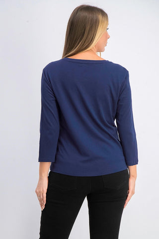 Camiseta feminina Karen Scott azul marinho com detalhes em abacaxi, tamanho médio