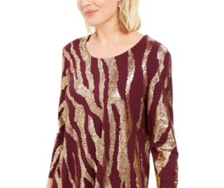 Top feminino com estampa de árvore vermelha Style & Co tamanho pequeno