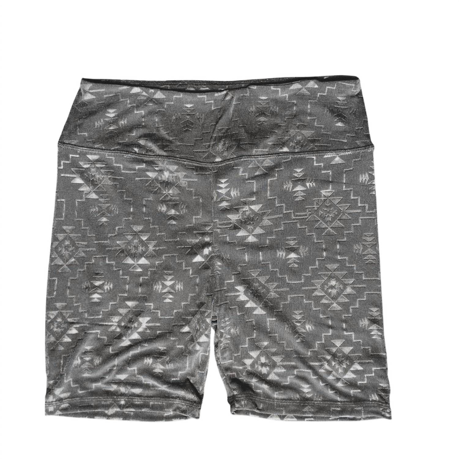 Unleash your bold side with the Chillville Biker Shorts by 2FlyCo, crafted specifically for the athleisure trend. These women's bike shorts are made from a silky stretch blend of 90% Polyester and 10% Spandex, featuring an eye-catching Aztec print on a sleek Gray Metallic finish. With a convenient pull-on closure, these shorts are perfect for summer fitness routines or festive occasions like the 4th of July. Made for those who appreciate both style and functionality, these shorts are the ultimate workout companion.