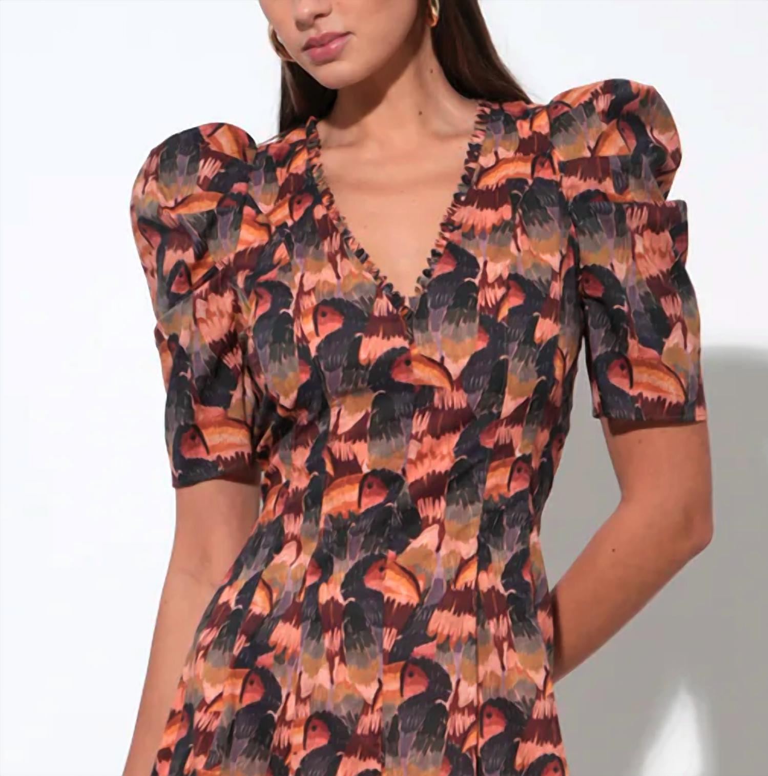 The perfect length dress does exist. The Gracie Puff Sleeve Midi Dress by Adelyn Rae is a boho chic A-line dress perfect for a Thanksgiving holiday party. It features short puff sleeves and a flattering V-neck design in a patterned multi-color style. Made from a cotton blend, this midi dress offers comfort and style for the spring season. With a pull-on closure, it's designed for women who appreciate effortless elegance.
