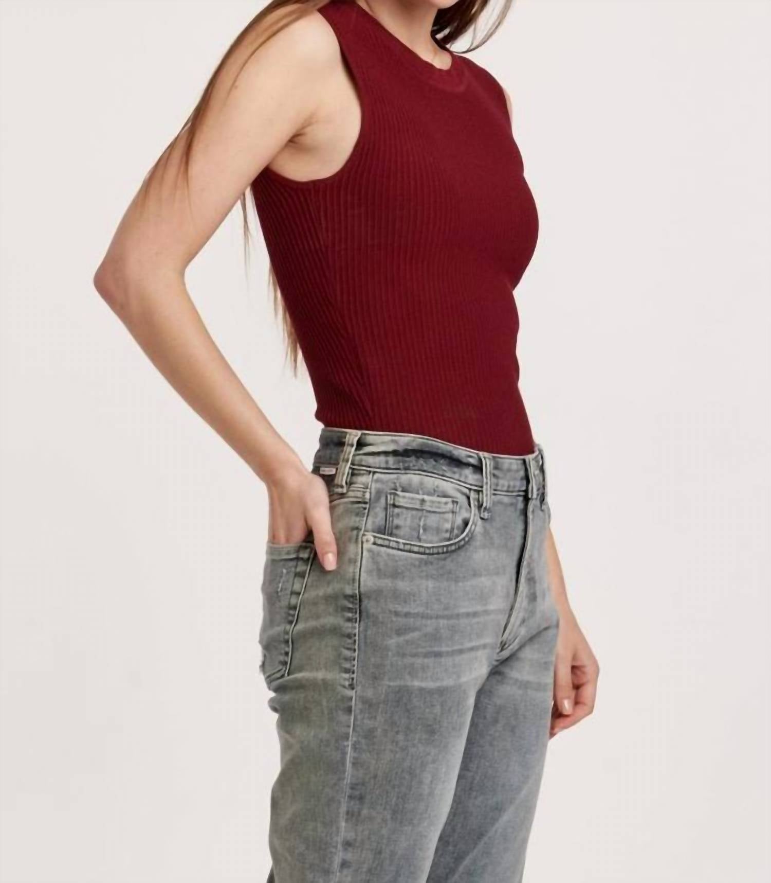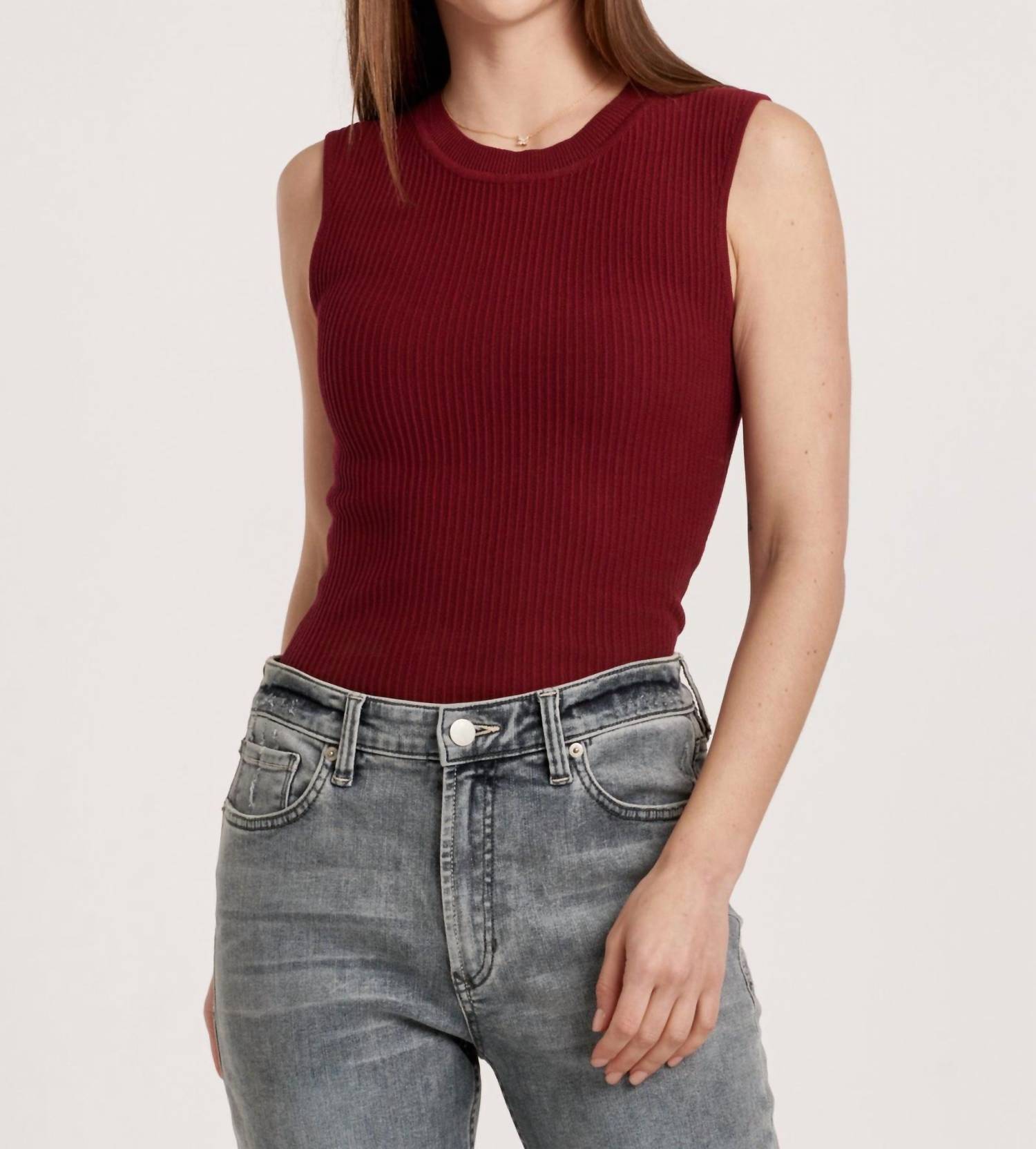 Fit, fabric and functionality. This tank top checks all the boxes. Introducing the Stirling Sleeveless Tank Top by Another Love, a vibrant piece in the shade Compote that is perfect for making a statement. This women's tank features a unique ribbed texture with a classic crewneck design. Made from a viscose blend of 70% Viscose and 30% Nylon, it offers both comfort and style. Closure: Pull on. Care: Hand wash and lay flat to dry, ideal for vacation or Easter holiday ensembles.