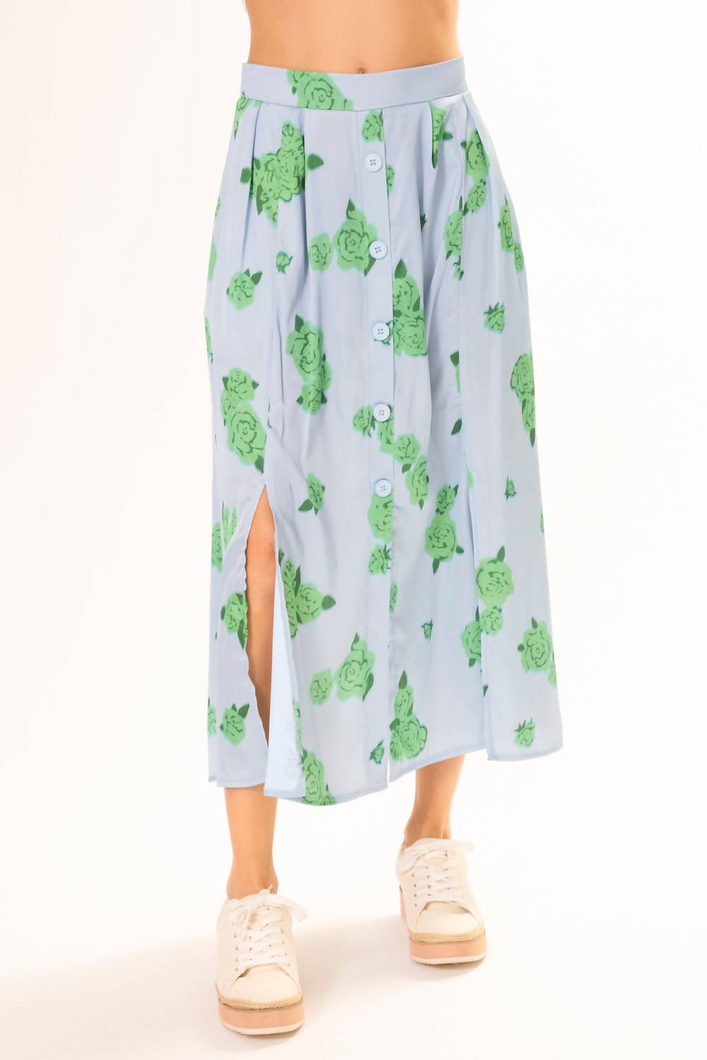 The Area Stars Women's Floral Carwash Skirt is a boho chic midi piece that merges elegance with a modern twist. With its blue and green floral print, this skirt features a unique carwash-style slit and a pull-on closure for effortless wear. Crafted from lightweight fabric, it offers a flowing pleated silhouette perfect for spring vacations. Care: Machine wash.