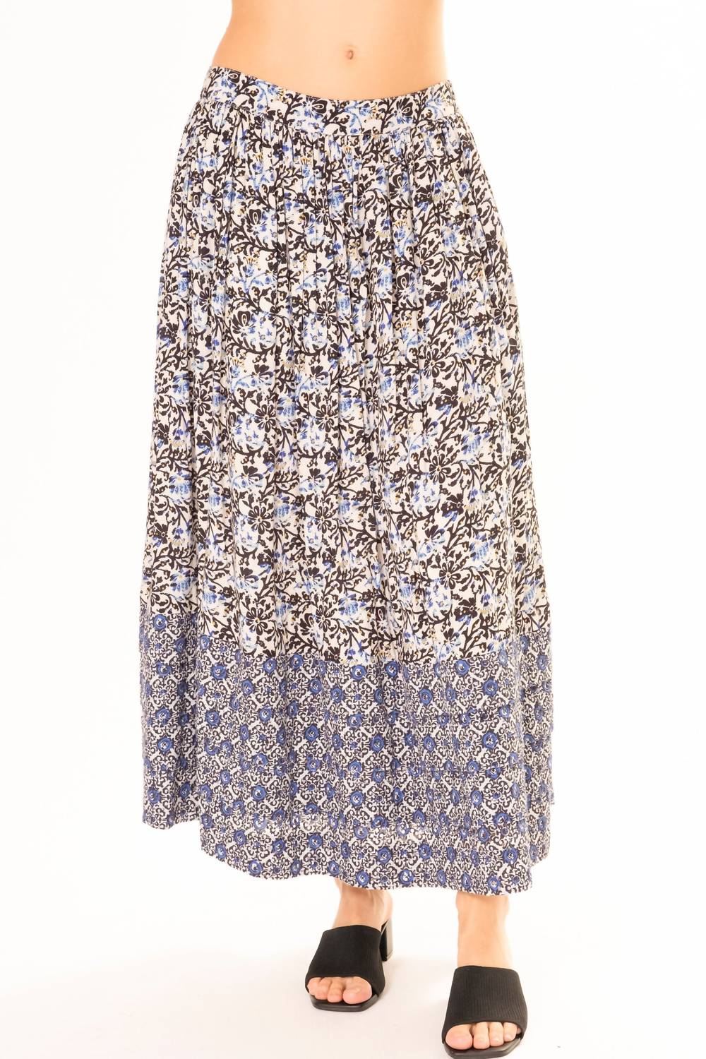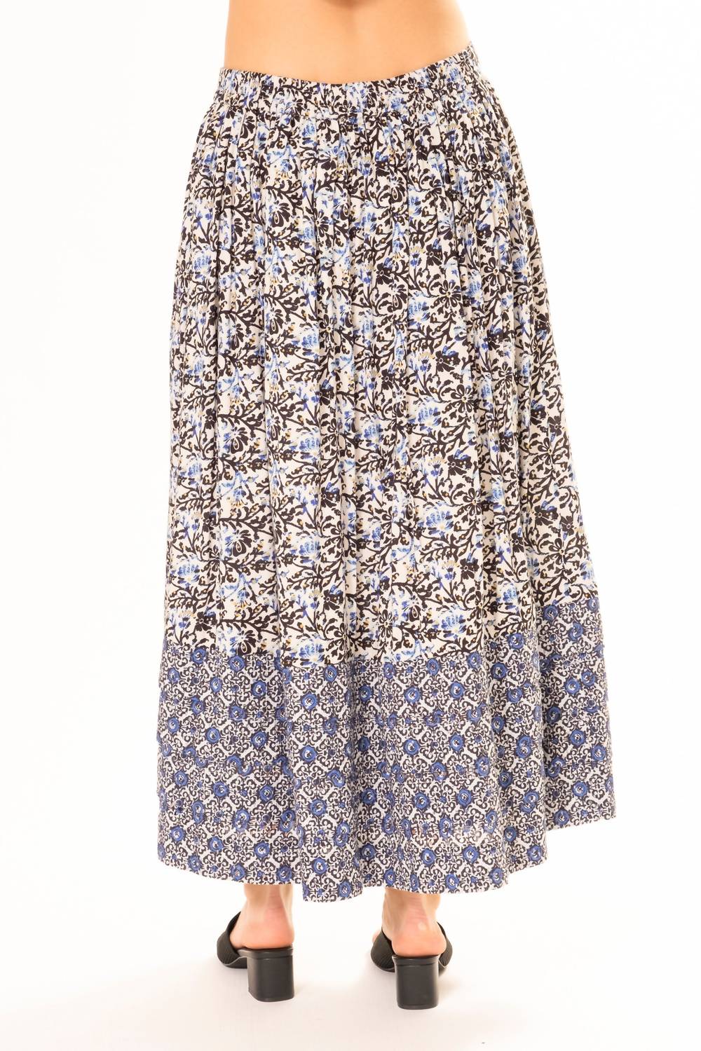 Elevate your warm-weather wardrobe with the Area Stars Women's Vine Midi Skirt in a charming blue floral print. This piece features a tiered design that adds volume and an elasticized waistband with an adjustable drawstring for a flattering, comfortable fit. Crafted from 100% cotton, this skirt is breathable and perfect for summer vacations or Easter gatherings. Closure: Pull-on style. Care: Hand wash cold, line dry.