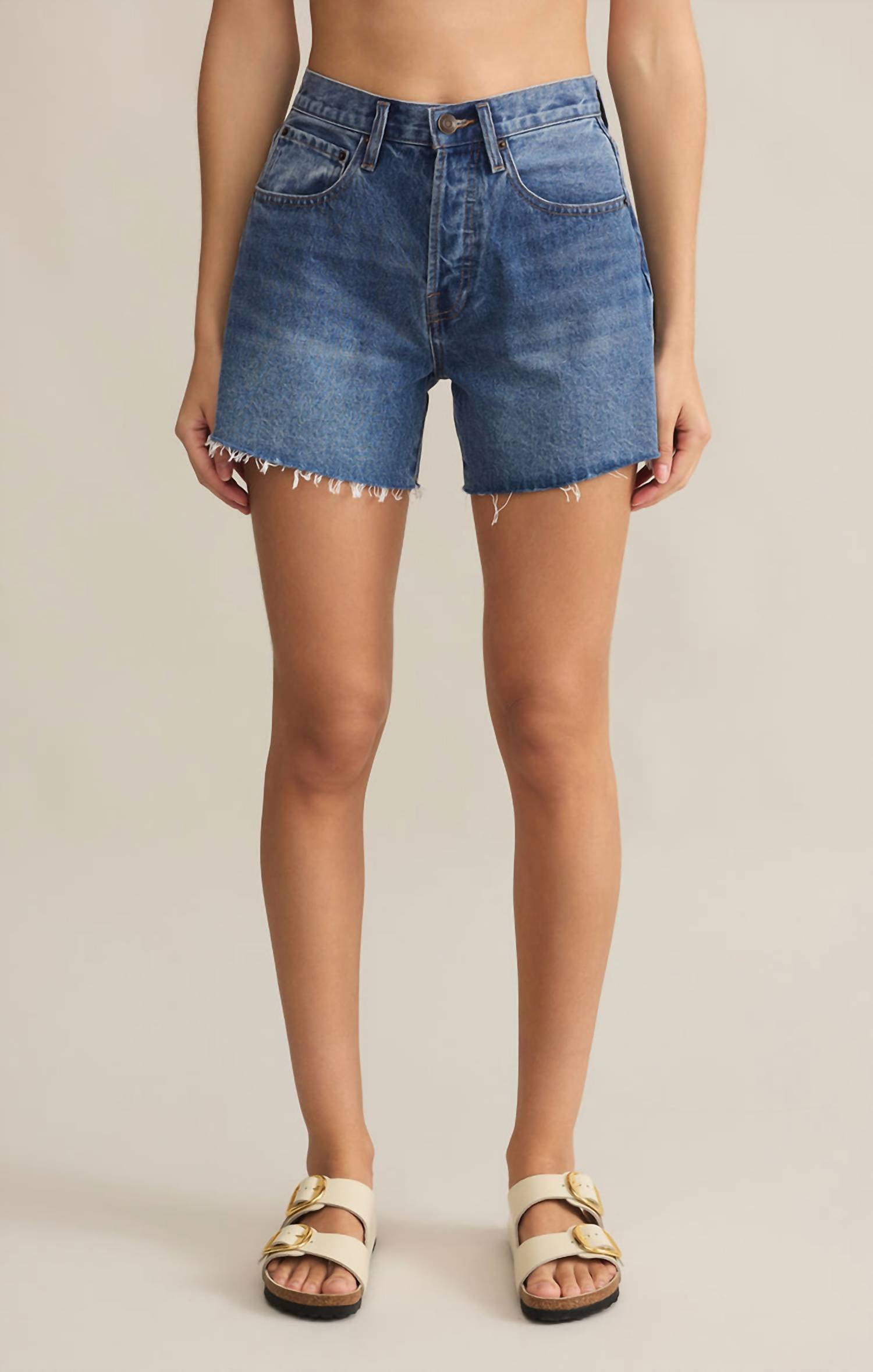 Introducing the Everyday Hi Rise Denim Short by Z Supply, a must-have for timeless style. Crafted from 100% non-stretch cotton, these high-rise shorts offer a regular fit and worn-in softness that you'll love to wear repeatedly. With a zip fly and button closure, they boast practical features like five pockets for everyday convenience. Machine wash cold and tumble dry low. The inseam length is 4.5 inches.