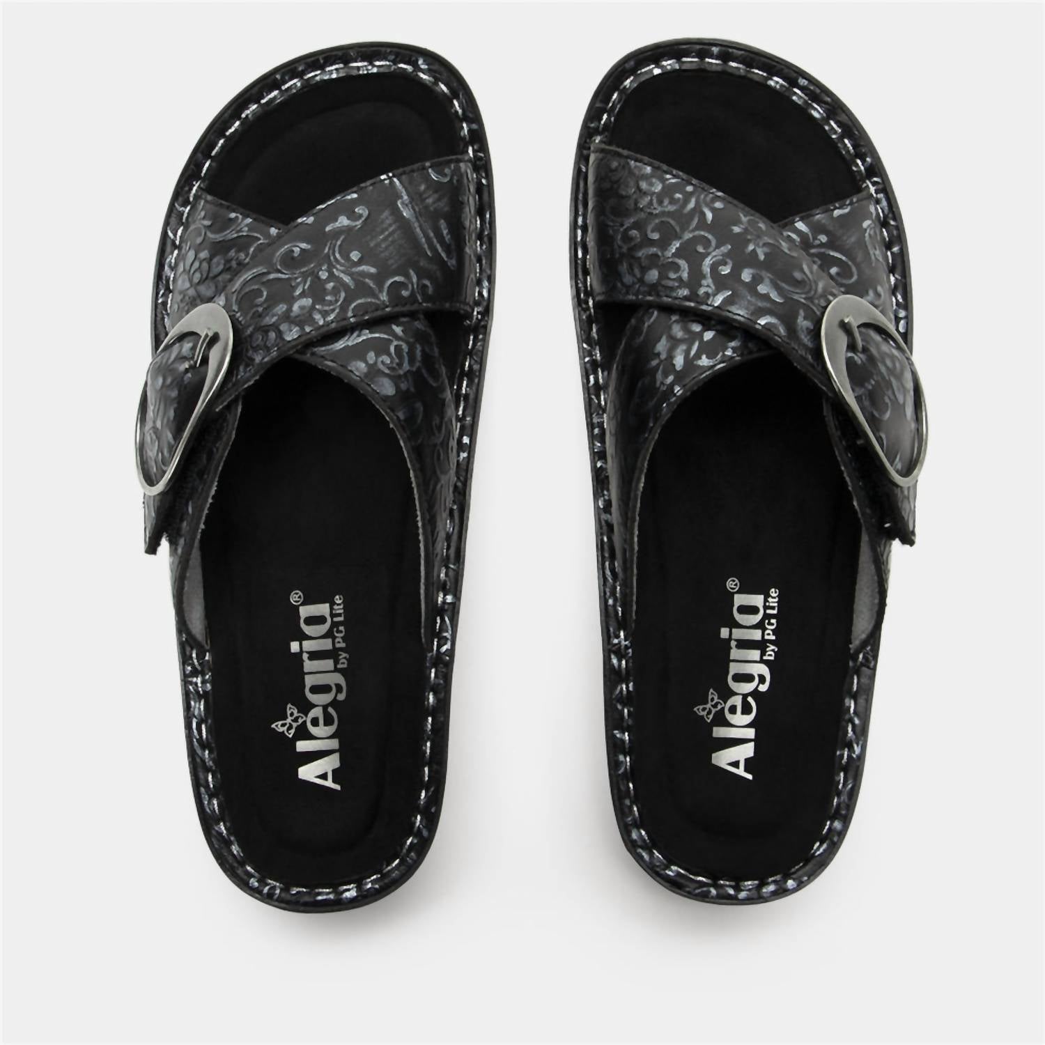 Flowy dresses, cropped pants, and even jumpsuits... this sandal works with them all! This crisscross sandal elevates a classic silhouette with handstitched detailing and an ornamental buckle on an adjustable hook‑and‑loop strap. A removable contoured footbed, crafted from cork and memory foam, fits into a mini outsole to support easy walking and comfort. Available with uppers in textured calf hair or smooth leather, it blends refined style and everyday wearability. This model also meets podiatric standards, includes a detachable, ergonomically designed footbed, and features a 1‑inch heel built on a mini‑rocker outsole.