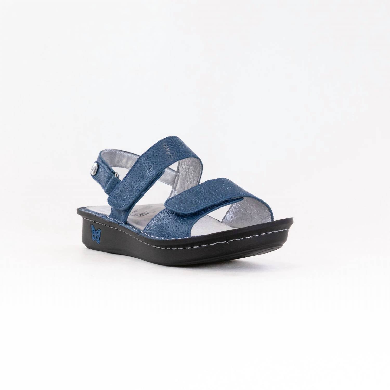 This sandal will take you from brunch to dinner and everything in between. Step into the warm shades of summer with the Women's Verona Sandal by Alegria in the vibrant Aqualita color. Expertly crafted with a medium shoe width and featuring a round toe design, these sandals boast a flat 1-inch heel height perfect for vacation getaways. The mini-rocker outsole promotes effortless movement while the leather lining and upper add a touch of sophistication. Enjoy a customized fit with three adjustable hook-and-loop closures, enhancing both style and comfort with every step.
