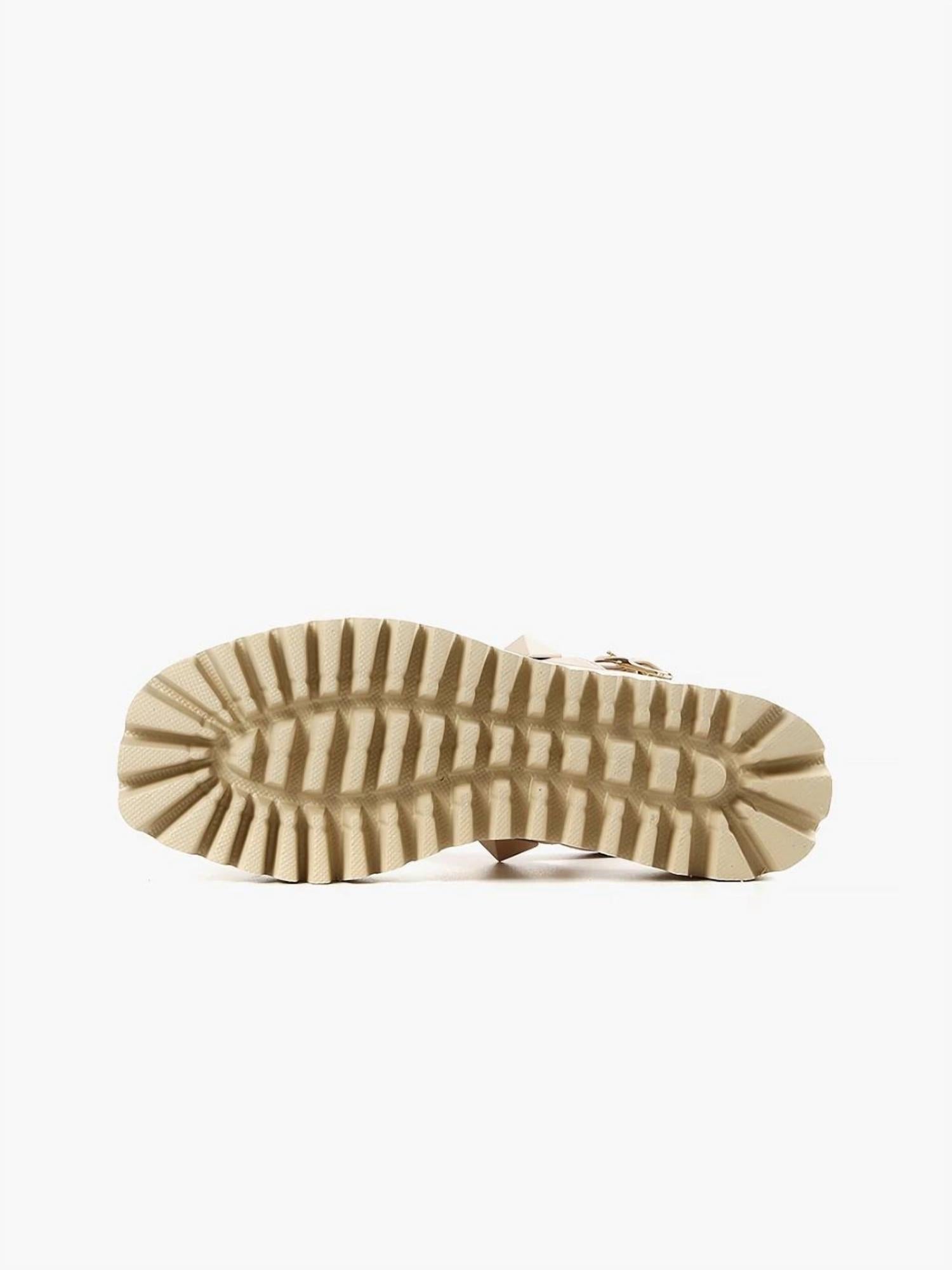 Vestidos esvoaçantes, calças cropped e até macacões... esta sandália combina com todos eles! Saia na moda com a sandália flatform ALL BLACK Pyramid Stud, uma escolha de calçado deslumbrante para jantares de primavera. Estas sandálias bege chiques apresentam um design elegante de bico aberto e um salto plataforma sofisticado, perfeito para adicionar um toque de glamour a qualquer look. Confeccionadas com cabedal em couro infantil de qualidade e solado sintético resistente, elas oferecem conforto e durabilidade. Incremente seu guarda-roupa com estas sandálias versáteis, projetadas para a mulher moderna.
