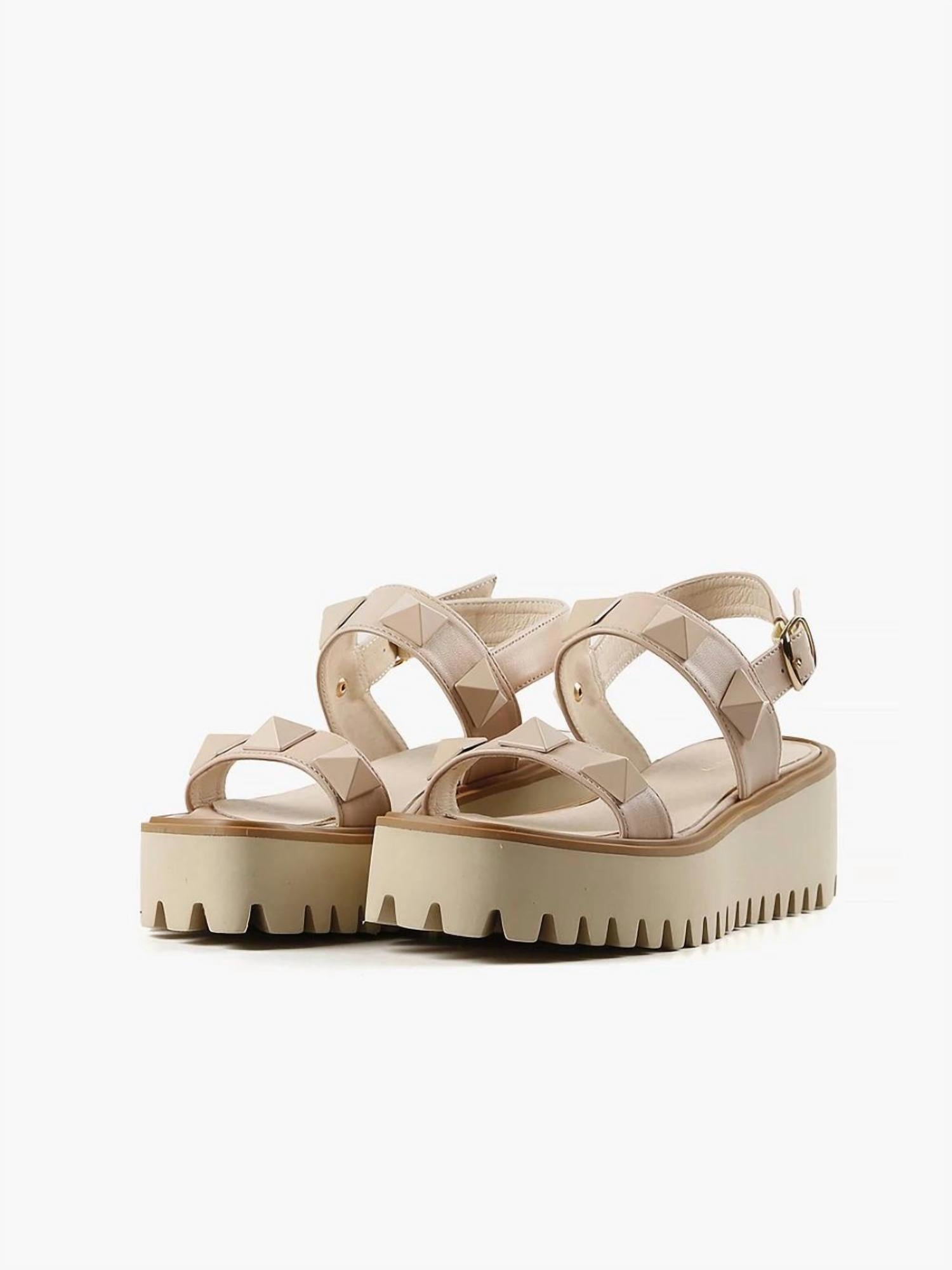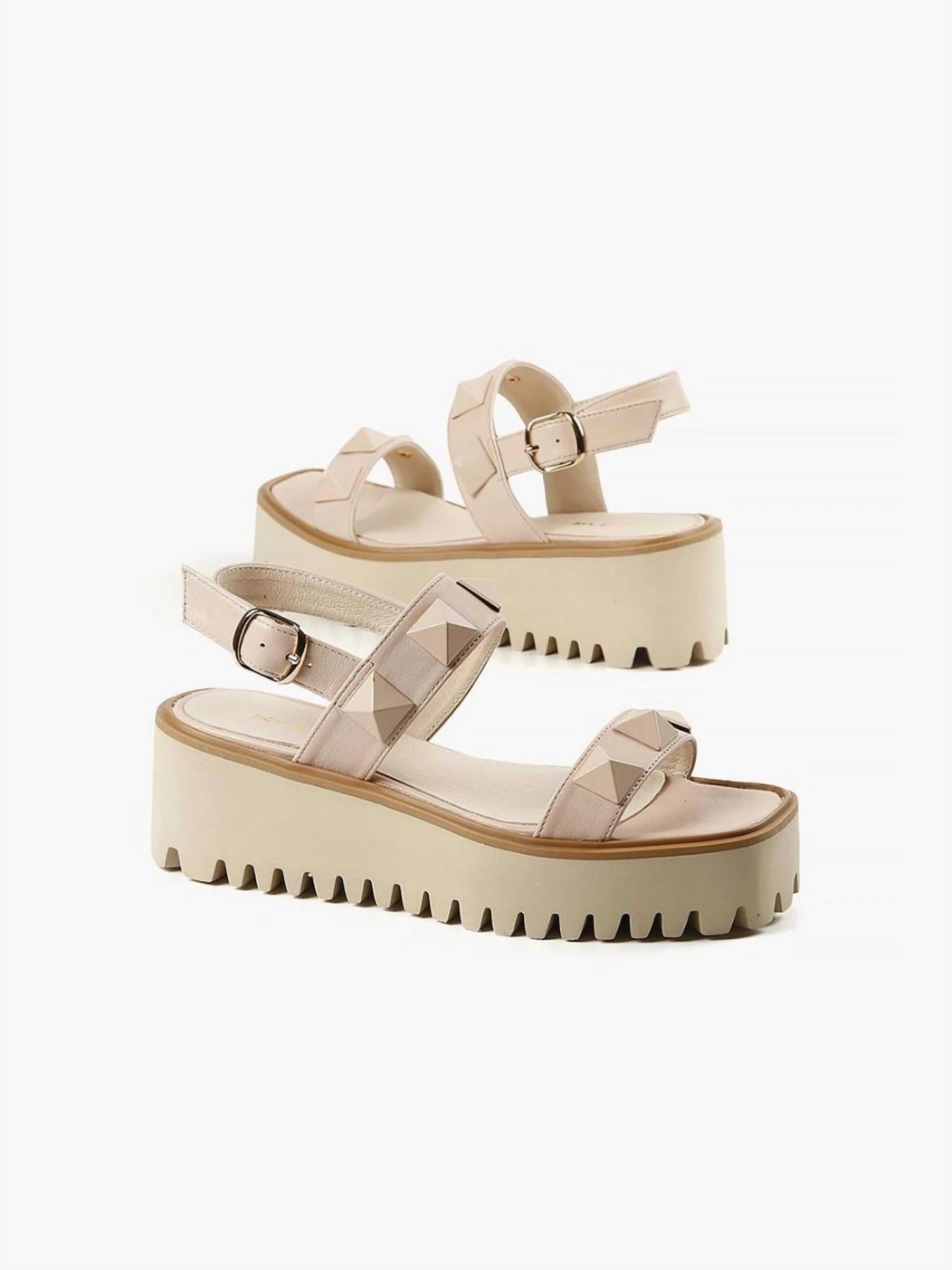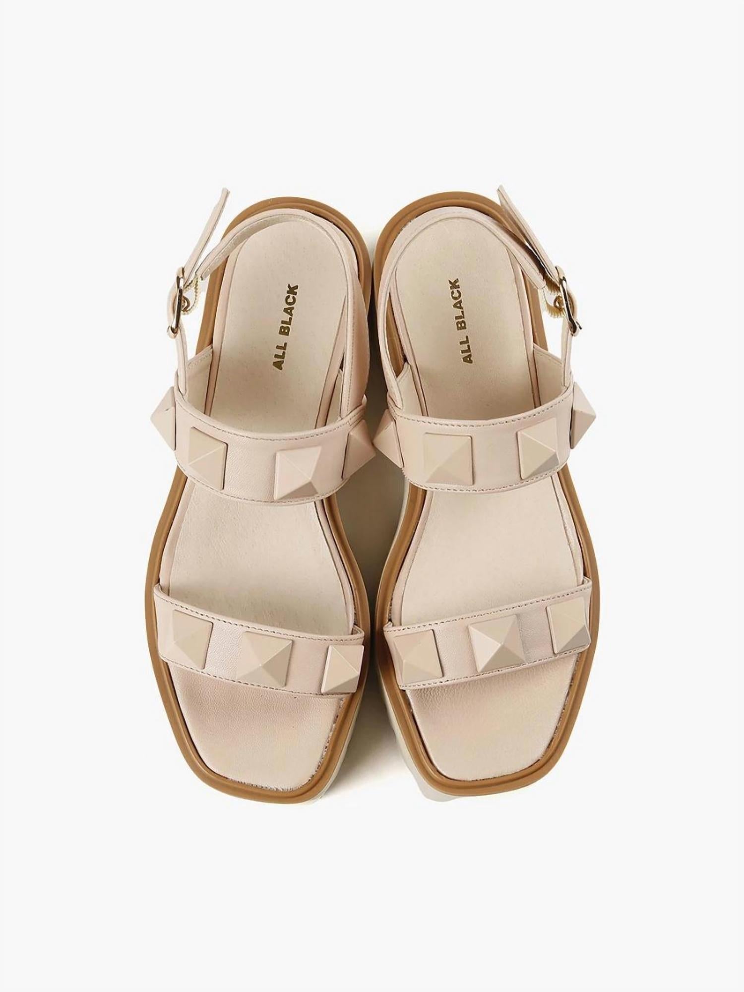 Saia na moda com a sandália flatform ALL BLACK Pyramid Stud, uma escolha de calçado deslumbrante para jantares de primavera. Estas sandálias bege chiques apresentam um design elegante de bico aberto e um salto plataforma sofisticado, perfeito para adicionar um toque de glamour a qualquer look. Confeccionadas com cabedal em couro infantil de qualidade e solado sintético resistente, elas oferecem conforto e durabilidade. Incremente seu guarda-roupa com estas sandálias versáteis, projetadas para a mulher moderna.
