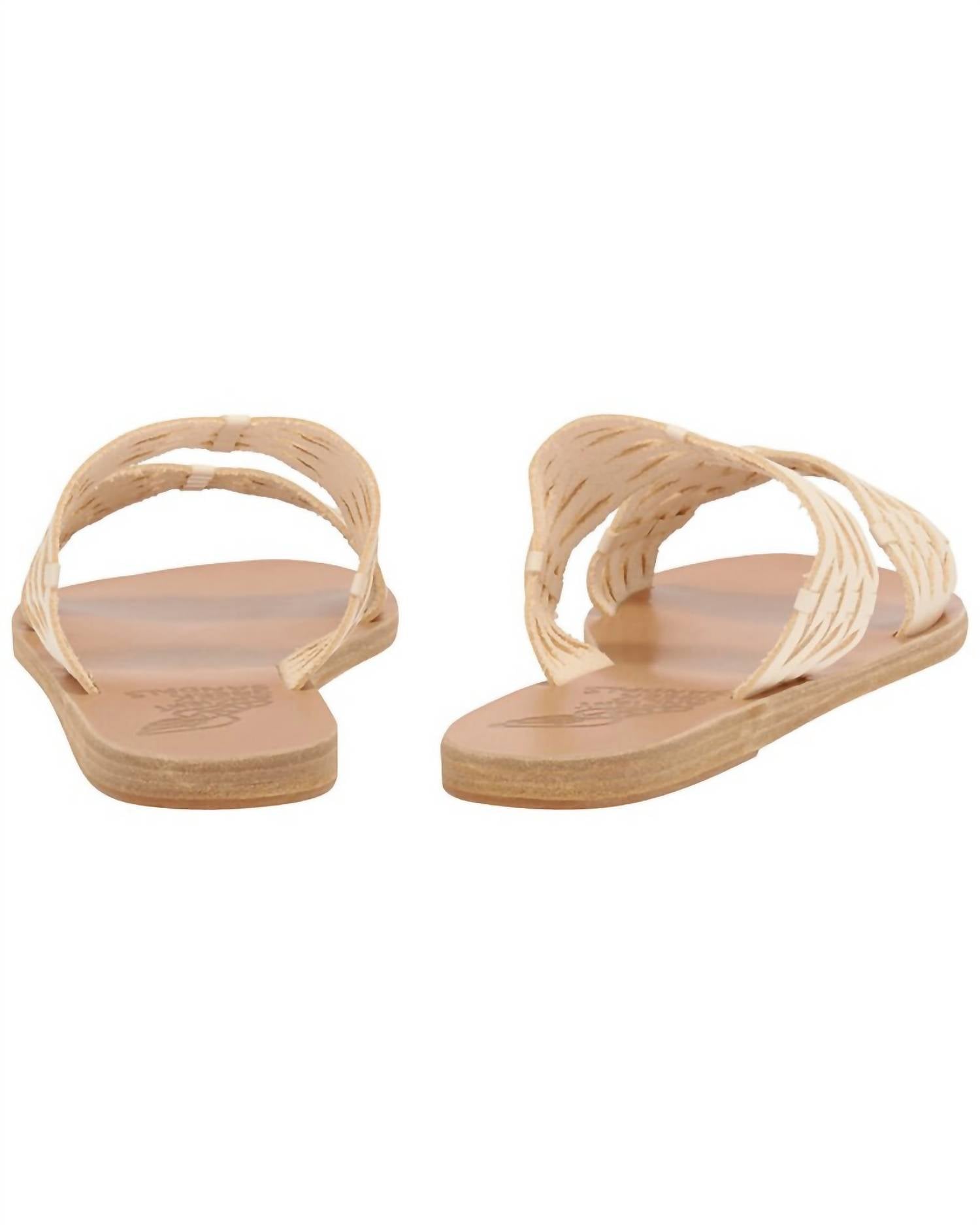 Apresentamos a Sandália Feminina Melia Woven Vachetta da Ancient Greek Sandals, um calçado elegante criado para conforto e estilo. Estes chinelos slip-on apresentam tiras de couro trançado feitas de 99% couro natural com um toque de borracha para maior durabilidade. Com acabamento em elegante off-white, apresentam salto plano com 1 cm de altura, perfeito tanto para passeios na praia quanto para escapadas noturnas. Importadas com tamanho europeu, estas sandálias oferecem um ajuste fiel ao tamanho, tornando-as uma adição versátil a qualquer guarda-roupa onde a sofisticação casual é fundamental.