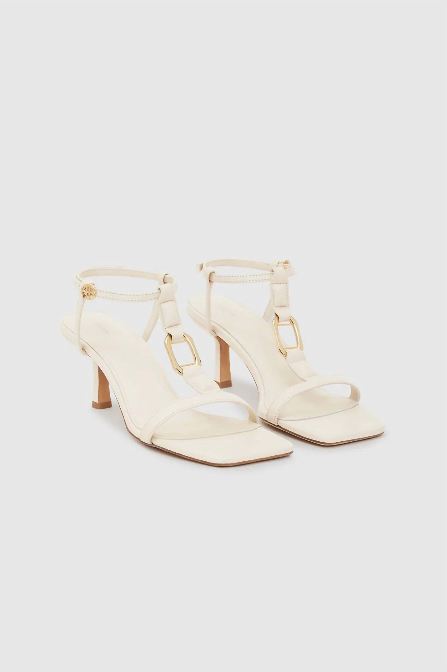 Não se deixe enganar, esses saltos são o mais confortáveis possível. Apresentamos as Sandálias Femininas Kiera da ANINE BING, uma adição sofisticada à sua coleção de calçados que transita facilmente do dia para a noite. Estas sandálias apresentam uma construção lisa em couro de cordeiro 100% marfim, com bico quadrado moderno e tira central exclusiva com elos. O design é complementado por uma fivela com monograma ANINE BING em ferragens douradas e um salto médio gatinho de 6,6 cm. Fabricadas em Portugal com instruções de cuidado para limpeza localizada, estas sandálias são ideais para um coquetel ou ocasião do Dia das Mães. Medidas do produto (tamanho 37): Altura do salto: 6,6 cm, Comprimento do solado: 20,4 cm, Largura do solado: 8,6 cm.