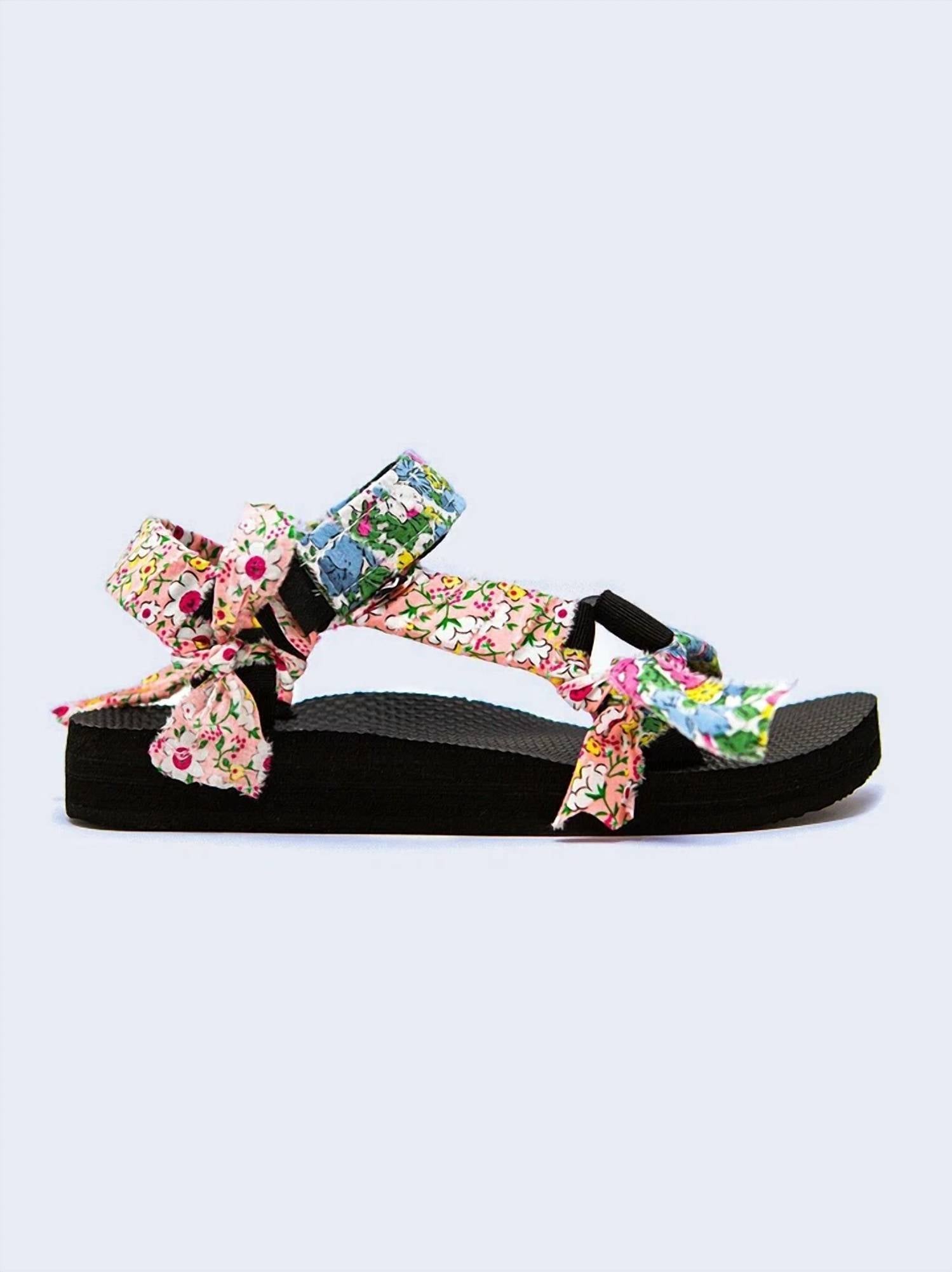 Descubra a Sandália Trekky Bandana da ARIZONA LOVE, uma opção ecológica com cabedal feito de garrafas plásticas recicladas. Projetadas com salto plano e bico arredondado para maior conforto, estas sandálias vêm em um vibrante padrão floral misto. Observação: Este modelo veste pequeno; recomenda-se pedir um tamanho maior. Perfeitas para a mulher consciente e chique, estas sandálias são feitas à mão para tornar cada passo elegante e sustentável.