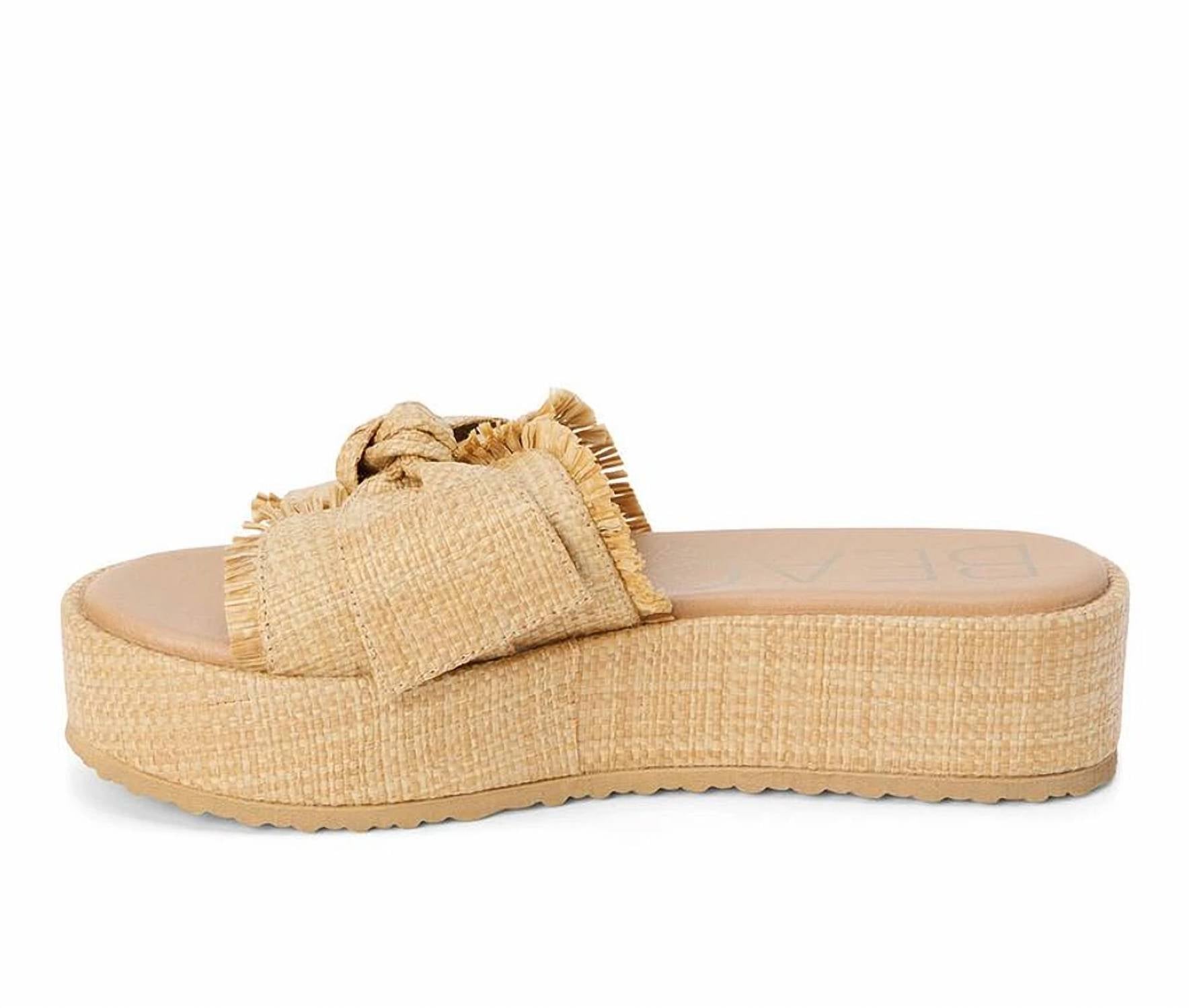 Esta sandália vai levar você do brunch ao jantar e a tudo o mais. Apresentamos a Sandália Feminina Sunda da Beach by Matisse, perfeita para um dia de praia de verão Boho Chic. Estas sandálias apresentam um cabedal de ráfia com um laço estiloso e tira larga, além de um design aberto nos dedos e estilo slip-on. Elas possuem um salto plataforma de 4,5 cm, tornando-as uma opção confortável para saltos baixos. O solado sintético garante durabilidade, e estas sandálias importadas estão disponíveis em um versátil tom bege.