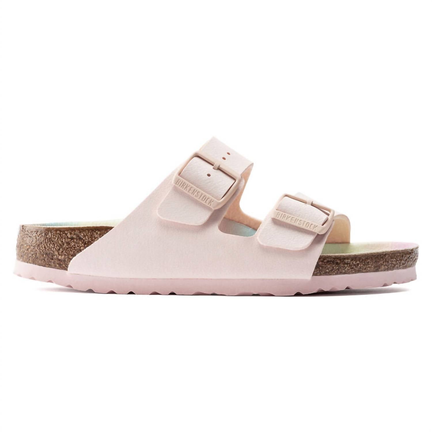 This sandal will take you from brunch to dinner and everything in between. Discover the iconic Women's Arizona Sandal by BIRKENSTOCK, now reimagined in a dazzling Light Rose Vegan finish. Featuring the legendary two-strap design with individually adjustable metal pin buckles, these sandals blend style with comfort. This vegan version boasts a skin-friendly microfiber upper and footbed lining, complemented by an anatomically shaped cork-latex footbed and an EVA sole. Made in Germany, these sandals are perfect for infusing a boho chic vibe into your summer vacation wardrobe.