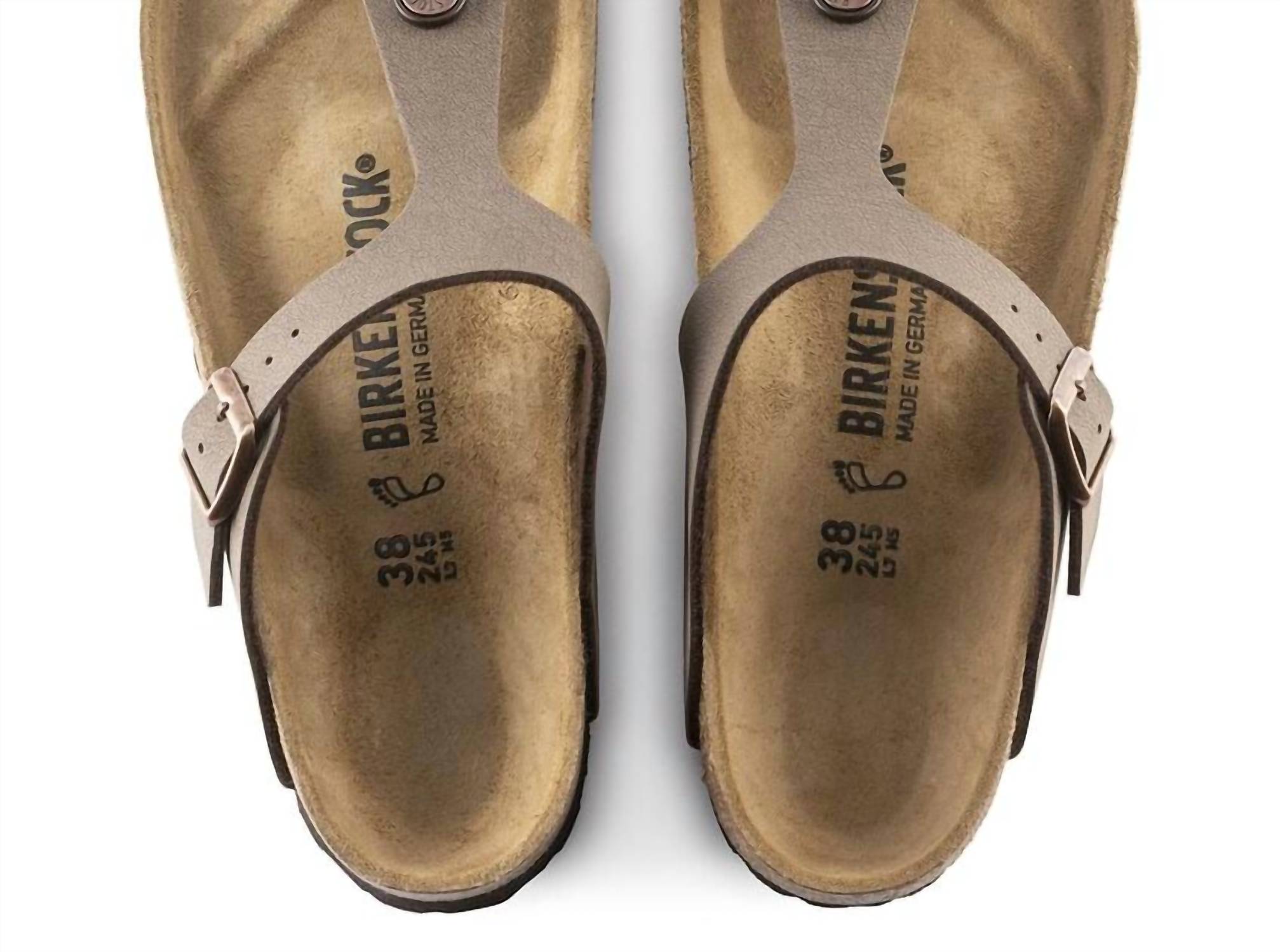 Flowy dresses, cropped pants, and even jumpsuits... this sandal works with them all! Step into summer with the Women's Gizeh Sandal by BIRKENSTOCK, a perfect blend of comfort and style in a boho chic. Designed with a round toe and flat heel, this sandal features a low heel height between 1 1/4"-2". The mocha color adds a versatile touch, making it ideal for vacation or casual outings. Embrace these sandals as a summer staple in your wardrobe.