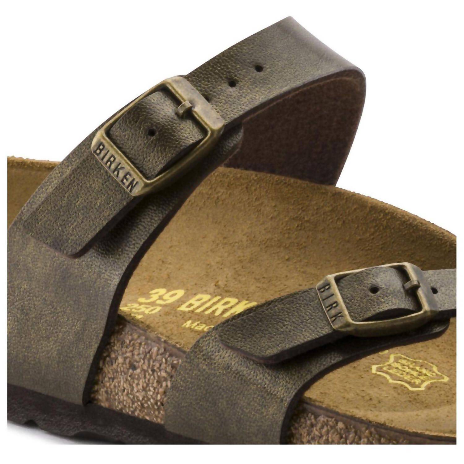The BIRKENSTOCK Women's Mayari Birko-Flor Sandal in Golden Brown is an elegant choice for summer dinners and Thanksgiving gatherings. This minimalist sandal features a delicate open toe with adjustable buckled straps and a fabric toe-loop, offering superior comfort and a customizable fit. Designed with a signature classic footbed, it naturally conforms to the shape of your foot, ensuring all-day support. Ideal for women who appreciate understated elegance and comfort.