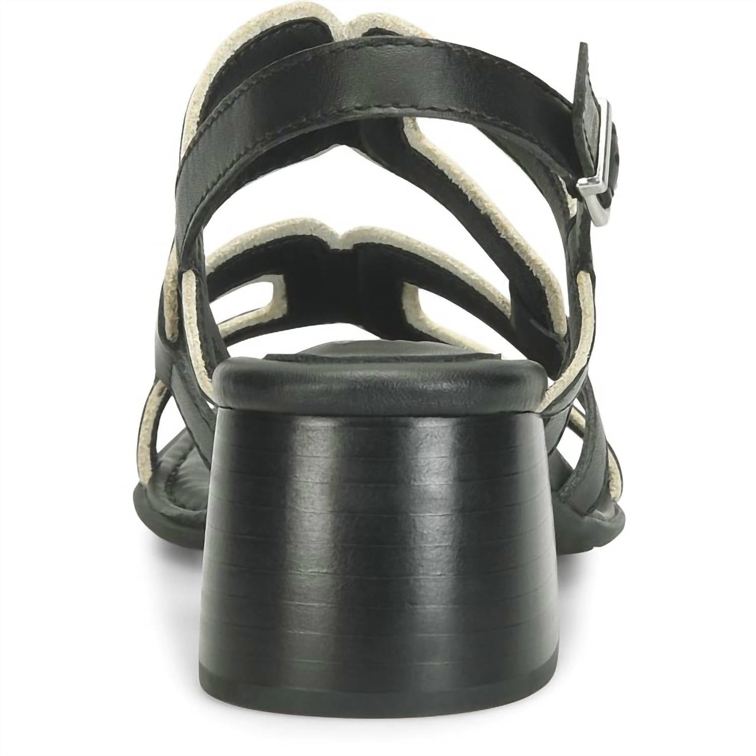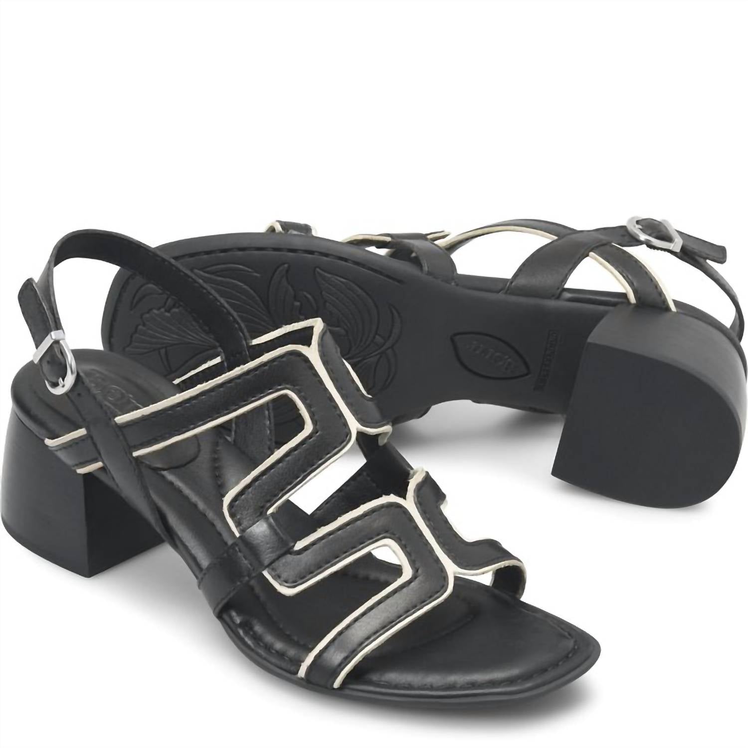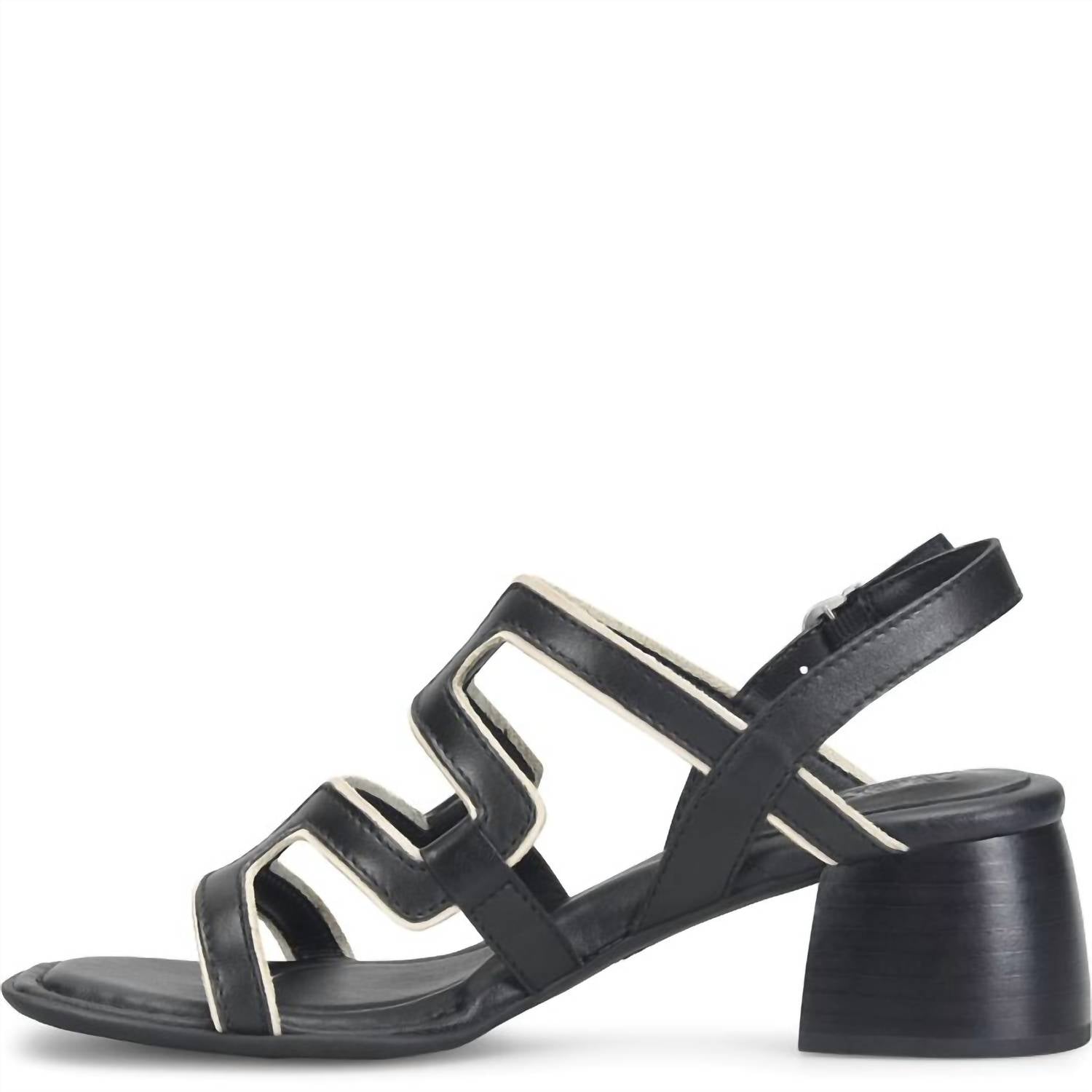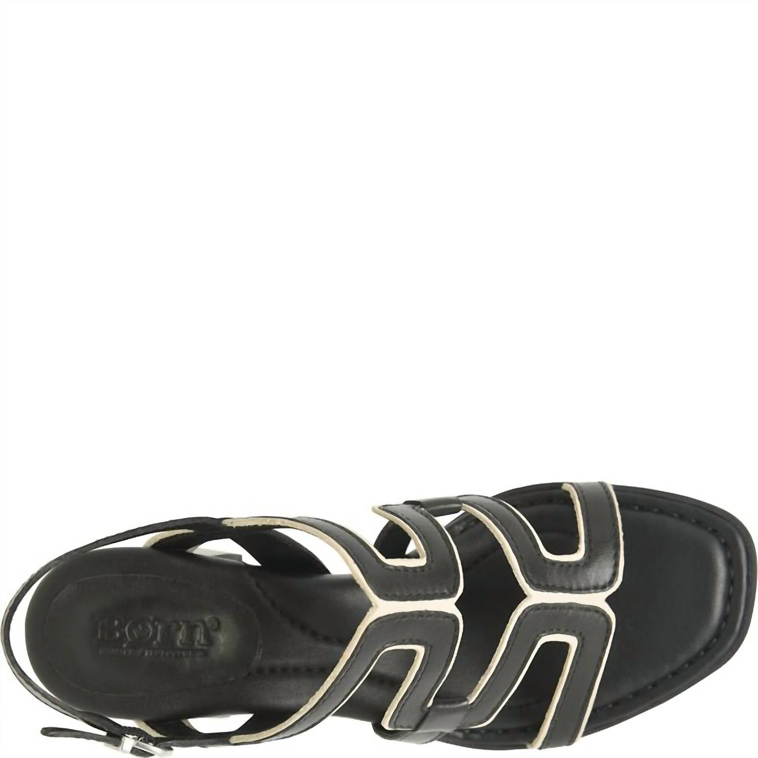 Introducing the Women's Sophia Sandal by Born, a minimalist masterpiece in elegant black designed for summer evening events. Constructed with a soft hand-finished leather upper and breathable micro fiber lining, this sandal ensures comfort with a cushioned micro fiber suede-covered footbed and extra foam. Offering a squared toe and block heel style, its 2-inch high leawood stacked wrapped heel and high-traction rubber outsole make it both stylish and practical. The 3/4 Opanka handcrafted construction guarantees flexibility and durability for all-day wear.