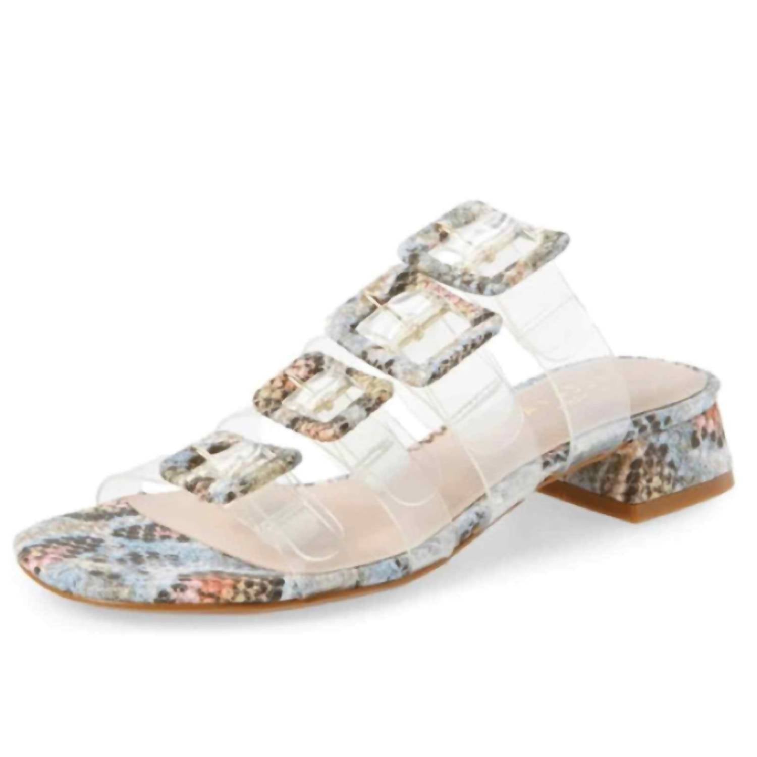 Apresentamos as Sandálias Femininas Lincoln da Cecelia New York em Silver Alabaster, projetadas para marcar presença com fivelas prateadas oversized e detalhes em acrílico. Estas sandálias estilosas apresentam bico aberto e salto bloco de 2,5 cm, perfeitas para ocasiões casuais e formais. Confeccionadas com uma combinação durável de couro e plástico acrílico transparente, elas oferecem um estilo slip-on para um uso prático. A palmilha de espuma viscoelástica garante conforto duradouro, permitindo que você ande com estilo o dia todo.