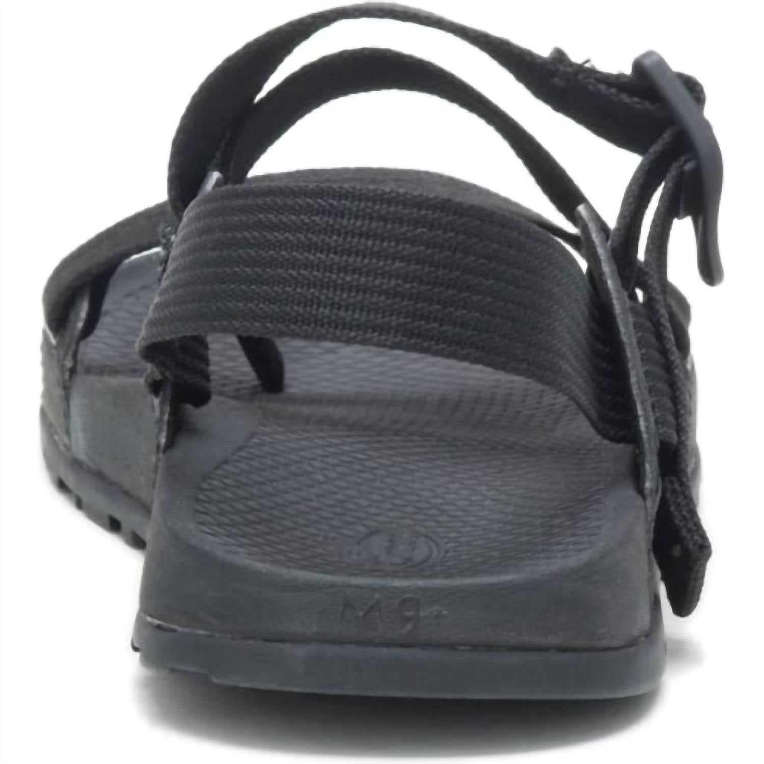 Step into comfort with the Chaco Men's Lowdown 2 Sandal in sleek black. Crafted with durable leather and featuring adjustable polyester jacquard webbing, these sandals are designed for all-day wear during your summer adventures. Enjoy a men's specific LUVSEAT Upbound EVA midsole for superior support and stability, while the non-marking ChacoGrip rubber compound provides a reliable grip with a 3.0 mm lug depth. Ideal for hiking or minimalist casual outings, these flat heel sandals with a round toe ensure both style and functionality.