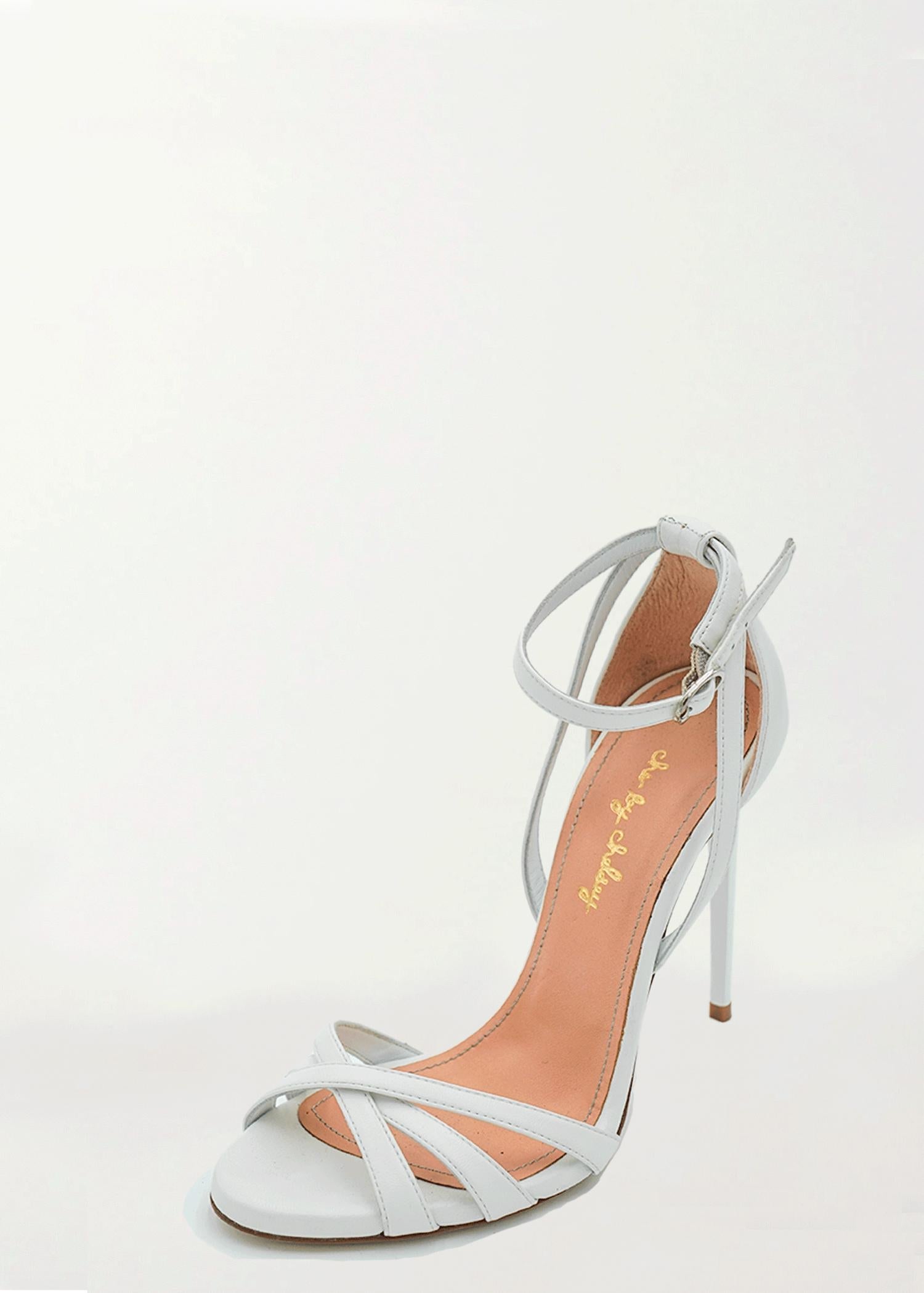 Entre na elegância com o Salto Aurore Bianco Feminino da Che by Chelsey, uma obra-prima italiana feita à mão em branco clássico. Com um sofisticado salto agulha de 4'', estas sandálias são confeccionadas em couro Napa e forradas com couro de bezerro luxuoso. Com bico arredondado e estilo estiloso, são perfeitas para eventos noturnos de primavera. Fabricados na Itália e com tamanho real, estes saltos trazem o artesanato europeu para o seu guarda-roupa.