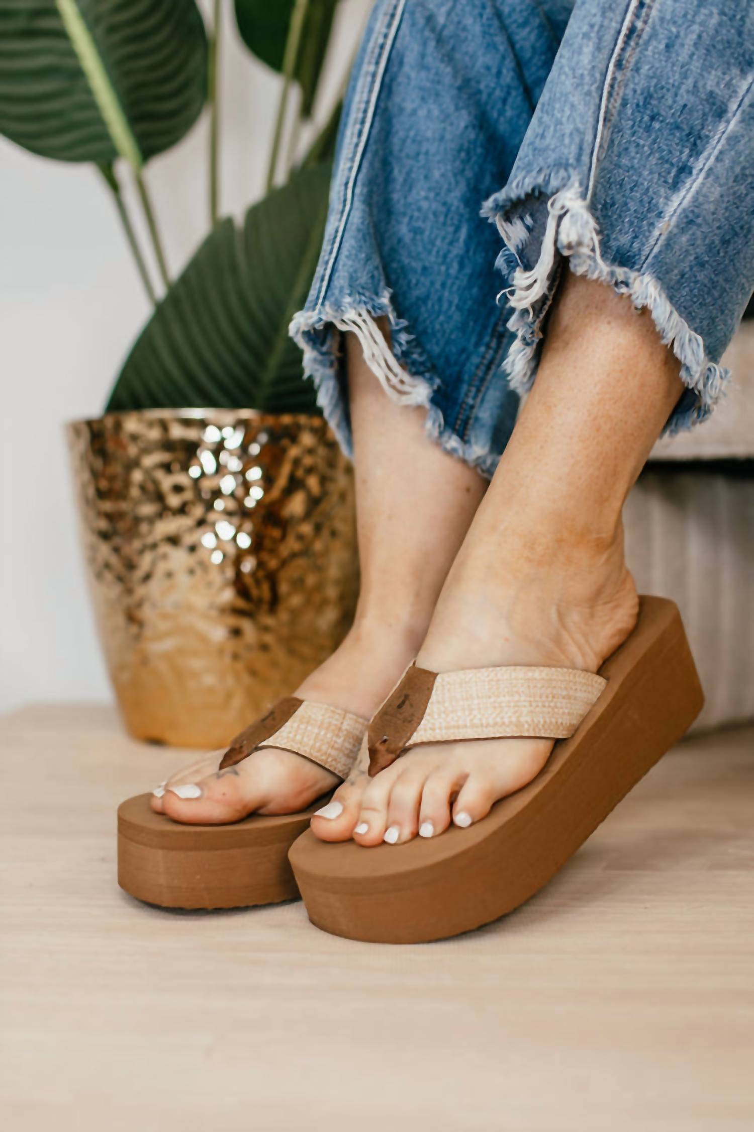 Esta sandália vai levar você do brunch ao jantar e a tudo o mais. Apresentamos a sandália feminina Take A Dip da Corkys Footwear, a adição perfeita ao seu guarda-roupa de verão com uma homenagem à moda dos anos 90. Estas sandálias apresentam um salto plataforma médio de 6 cm e um design confortável com bico redondo, ideal para festivais de música ou passeios casuais. Confeccionadas com palmilhas flexíveis de neoprene, garantem conforto o dia todo, e as tiras de ráfia conferem um toque boho-chic. Disponíveis em várias cores, estas sandálias estilosas são fiéis ao tamanho, sendo recomendado o uso de um número maior para meias-calças.