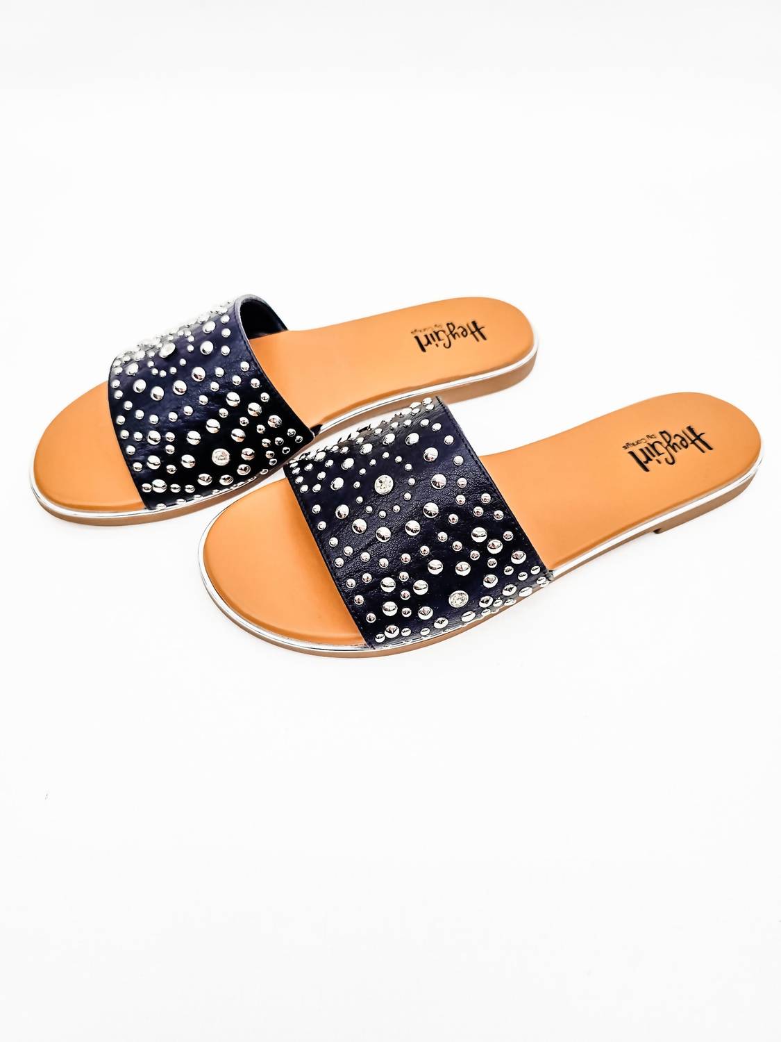 Clássico e fofo, perfeito para usar o dia todo. Adoramos esta sandália. Entre no estilo com as Sandálias Femininas Bail Money Bling da Corkys Footwear, que oferecem um visual chique com acabamento em couro sintético preto e detalhes brilhantes na tira. Estas sandálias rasteiras e sem cadarço apresentam um design aberto nos dedos e uma palmilha marrom confortável com salto minimalista. Ideais para o streetwear, são perfeitas para as férias de verão ou para a comemoração do 4 de julho. Projetadas para serem fiéis ao tamanho, considere escolher um tamanho maior para pés mais largos e um menor para pés mais estreitos.