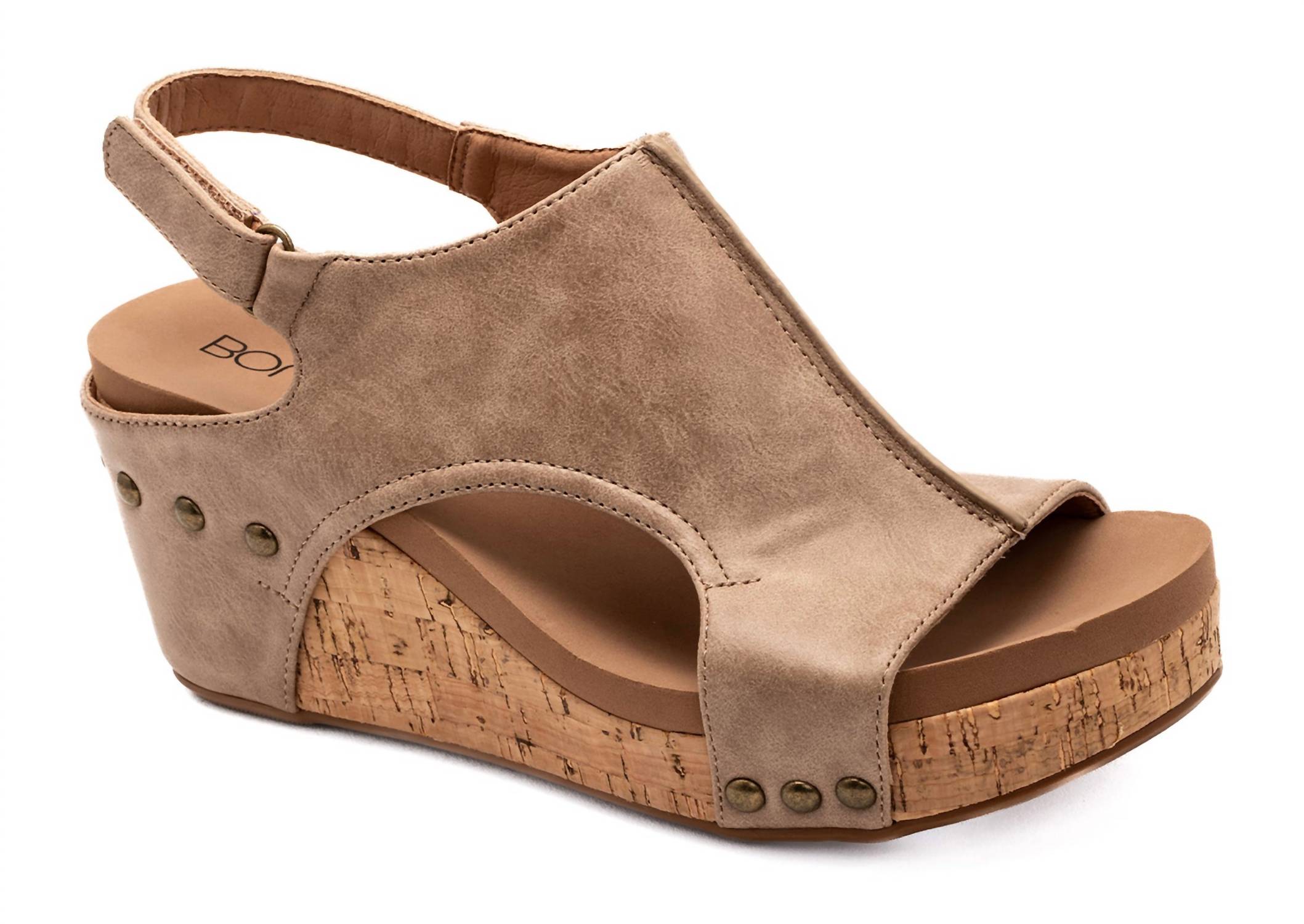 Incremente seu estilo de verão com a Sandália Carley Wedge Feminina da Corkys Footwear, disponível na elegante cor camel. Com cabedal em couro sintético e bico arredondado, estas sandálias anabela ostentam um confortável salto de cortiça de 6 cm para elevar seu visual sem esforço. A palmilha de espuma EVA garante máximo conforto e suporte, enquanto o fecho fácil de velcro oferece um ajuste personalizável. Ideais para um jantar ou uma elegante ocasião para o Dia das Mães, estas tendências incorporam a vibe do Y2K.