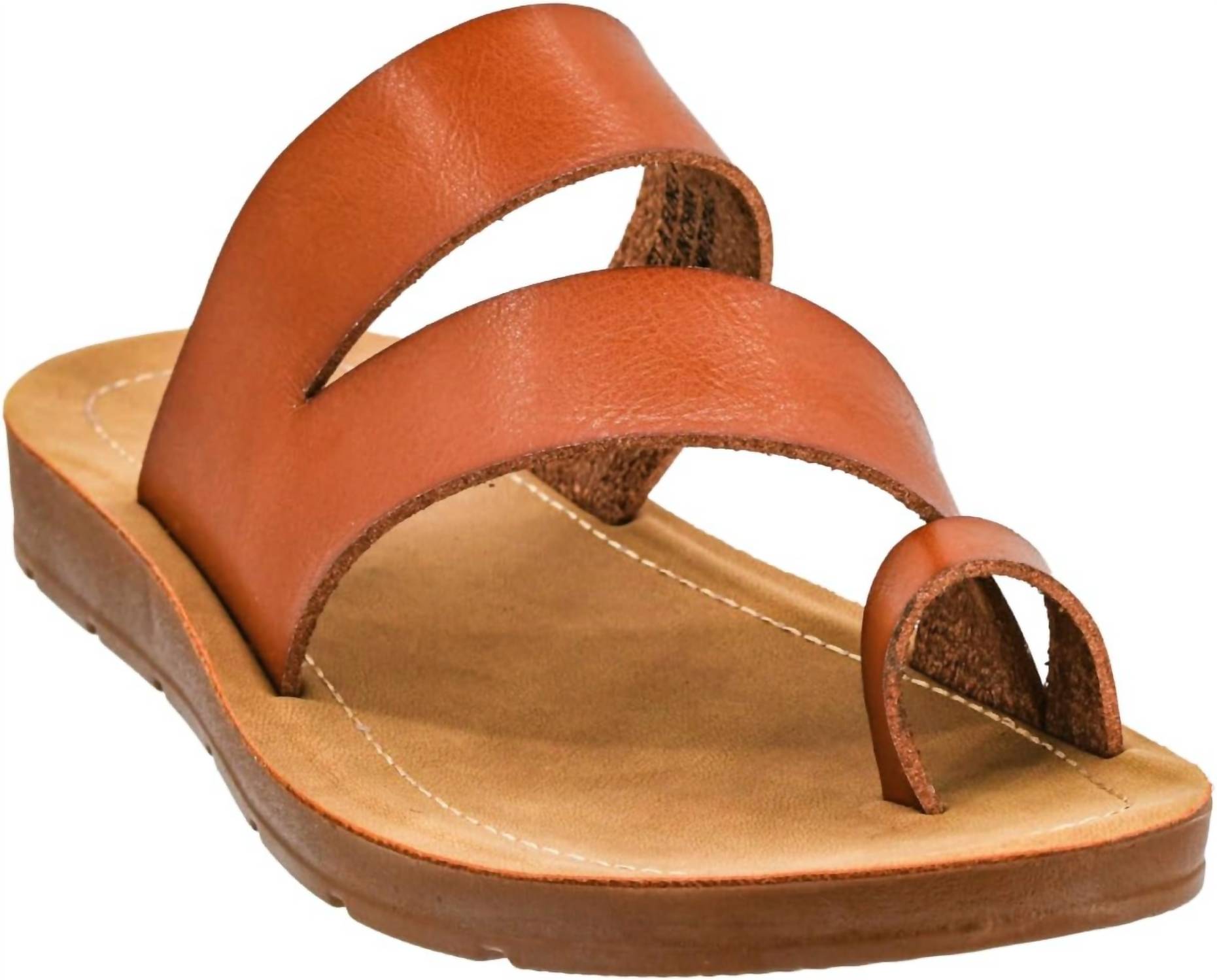 Flowy dresses, cropped pants, and even jumpsuits... this sandal works with them all! Step into style and comfort with the Women's Just A Fling Cognac Sandal by Corkys Footwear, ideal for your summer vacation wardrobe. Crafted from luxurious leather, this medium-width sandal features an open toe design with a flat heel for all-day wearability. The rich cognac color pairs effortlessly with any outfit, making it a versatile addition to your collection. Perfect for beach strolls or casual outings, this sandal promises to complement your warm-weather ensembles.