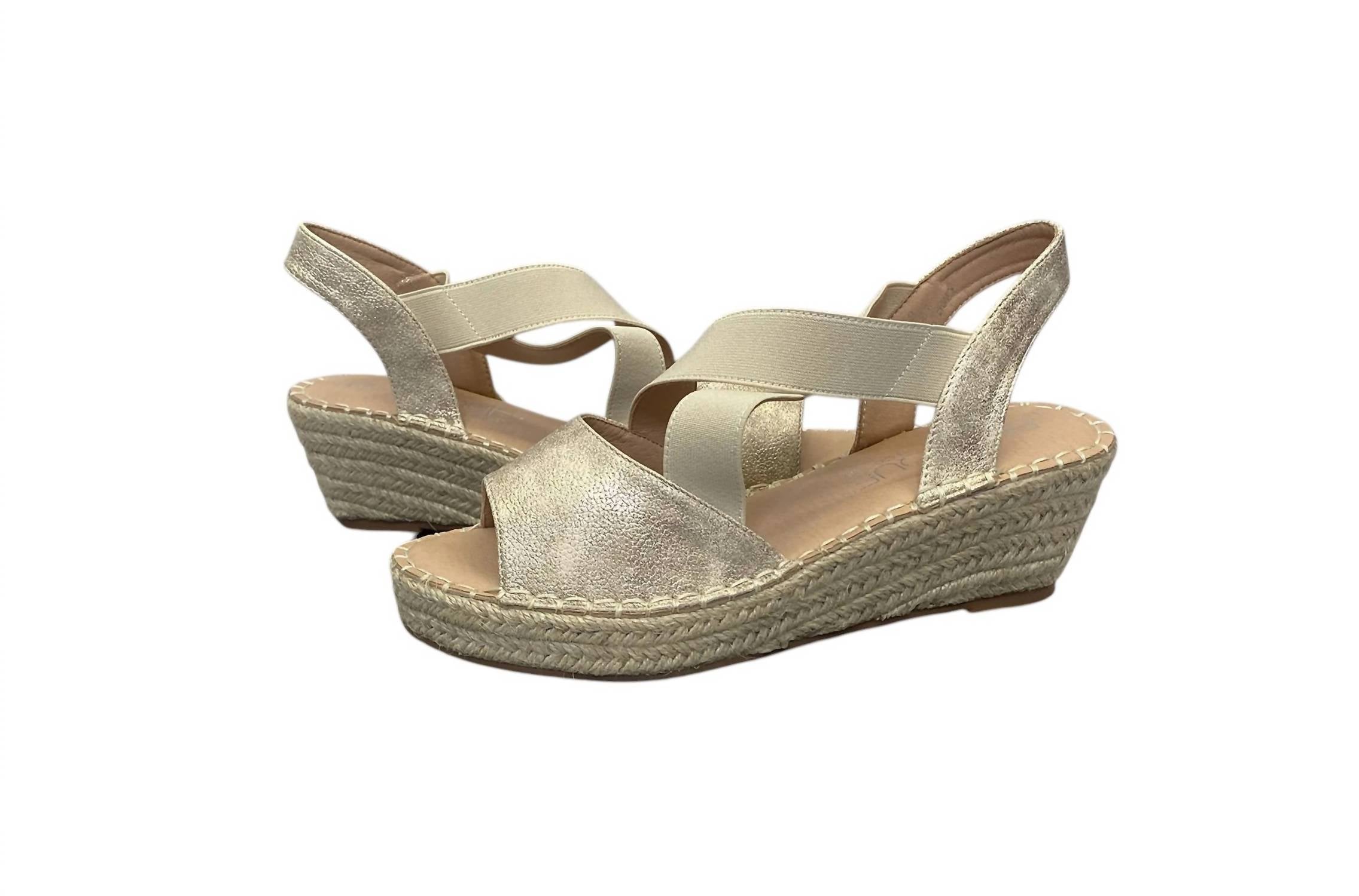 Apresentamos as Sandálias Anabela Kimmie Femininas da Corkys Footwear, o complemento perfeito para o seu guarda-roupa de verão. Estas sandálias douradas oferecem uma silhueta elegante e um design aberto, incorporando qualidade e conforto. Com salto anabela, são ideais para a mulher adulta que busca adicionar um toque chique aos seus looks. Abrace o calor da estação com estes sapatos modernos e versáteis.