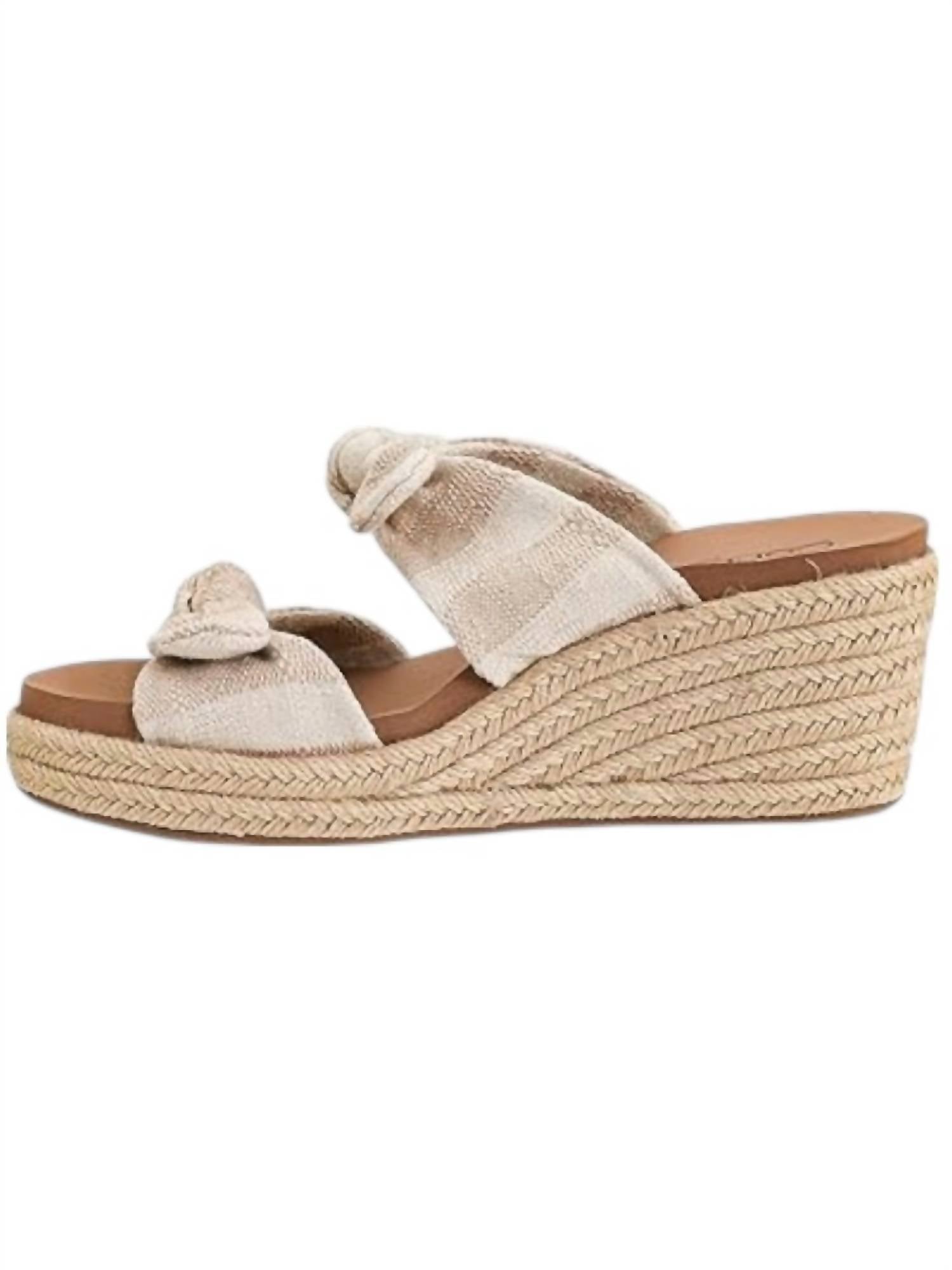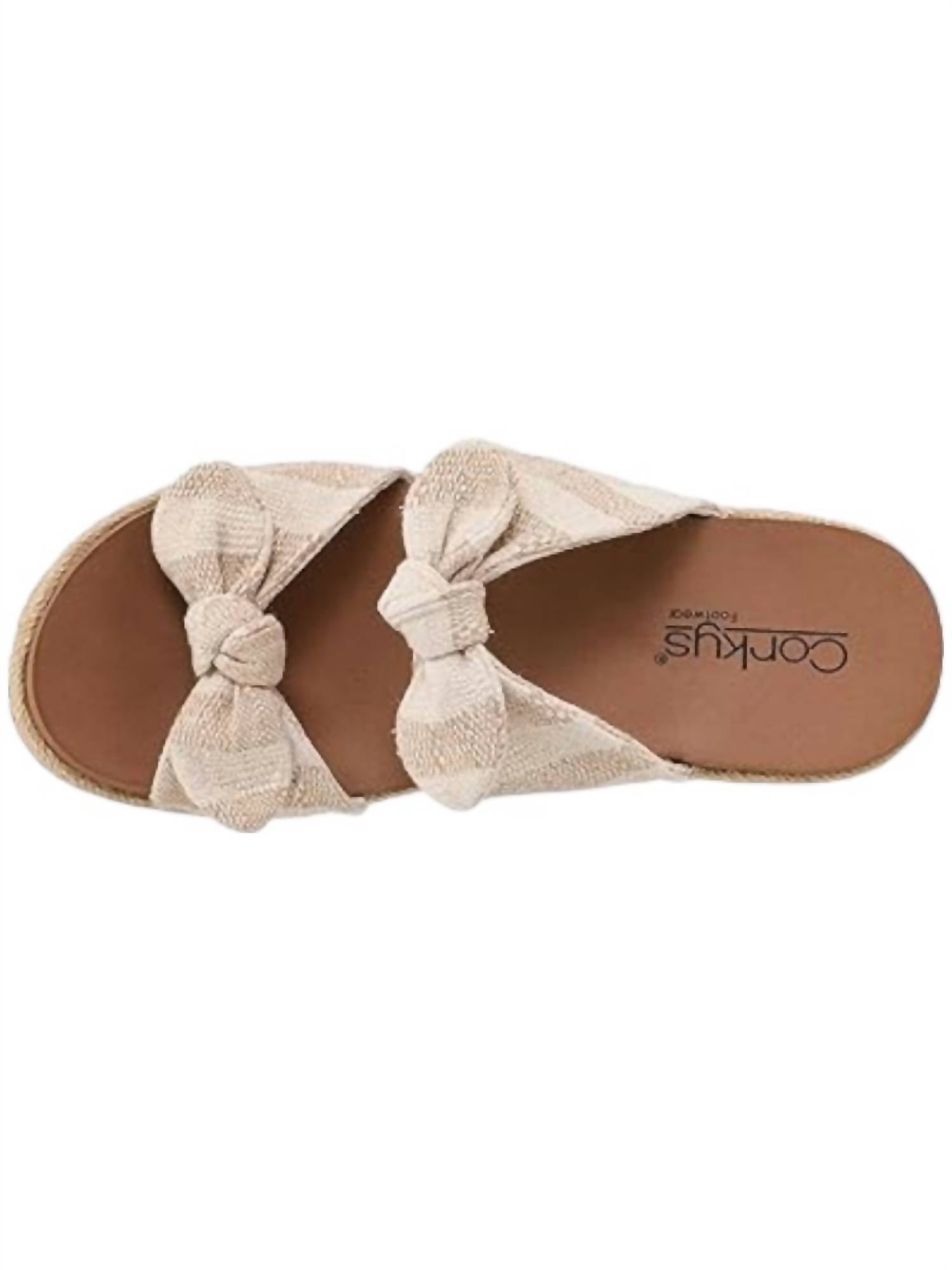 Saia com estilo e conforto com as Sandálias Anabela Listradas Tie The Knot Femininas da Corkys Footwear. Com salto plataforma de cortiça de 6,3 cm, estas sandálias oferecem a combinação perfeita de altura, estabilidade e conforto, ideais para uso diário. Com solado de borracha sintética e fecho fácil de calçar, proporcionam um uso sem complicações e durabilidade, complementados pelas Palmilhas de Espuma de Memória EVA Macia da Corkys. Estas sandálias em tom natural bege com design aberto são perfeitas para ocasiões de primavera, como festas de fim de ano, tornando-as um complemento sofisticado para qualquer look.