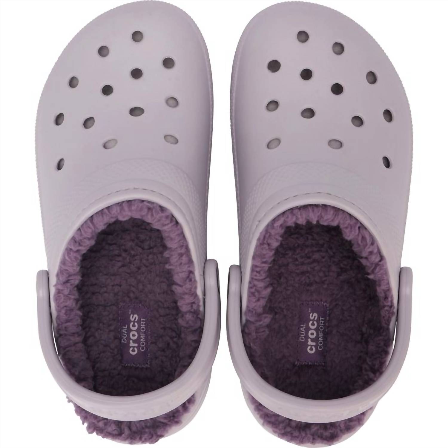 Classicly cute and all-day-wearable. We love this sandal. Introducing the Women's Fur Lined Classic Cozy Sandal by Crocs, a perfect blend of comfort and style for all your winter adventures. This purple sandal features a warm, fuzzy liner for added cushion, making it ideal for both indoor use and outdoor errands. The Croslite™ foam construction ensures these sandals are incredibly light, while the pivoting heel strap provides a secure fit. Designed with a round toe shape, this versatile piece complements a streetwear trend and is suitable for travel occasions.