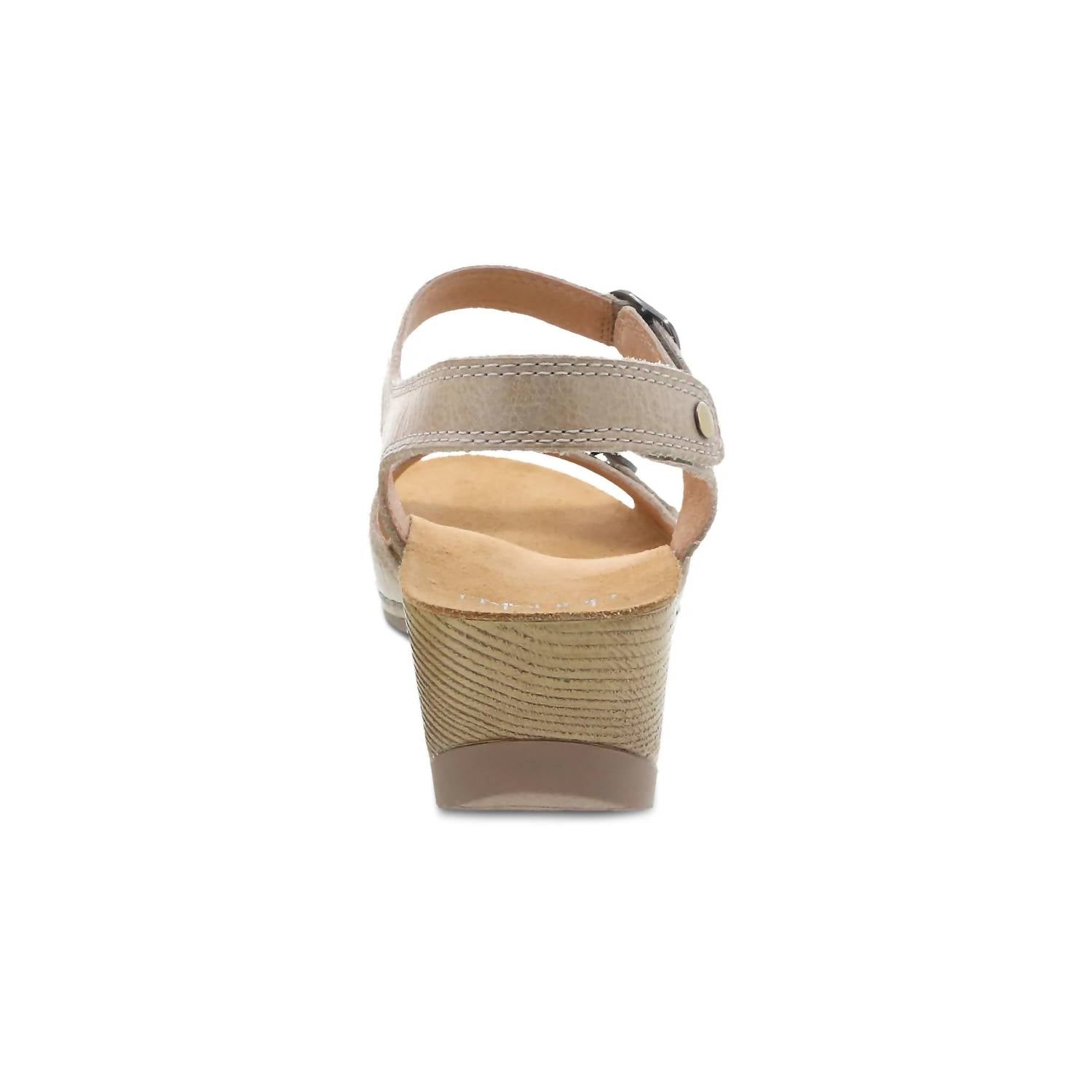 Step into style with the Dansko Women's Tricia Sandal in Milled Burnished Linen, perfect for your next dinner party. This boho chic summer sandal combines burnished leather uppers with leather linings for unmatched comfort all day long. Its open toe design features a contoured footbed with memory foam and a shock-absorbing, fully contoured PU midsole for superior support. Enjoy the lightweight durability of its rubber outsole and the convenience of a concealed hook and loop closure.