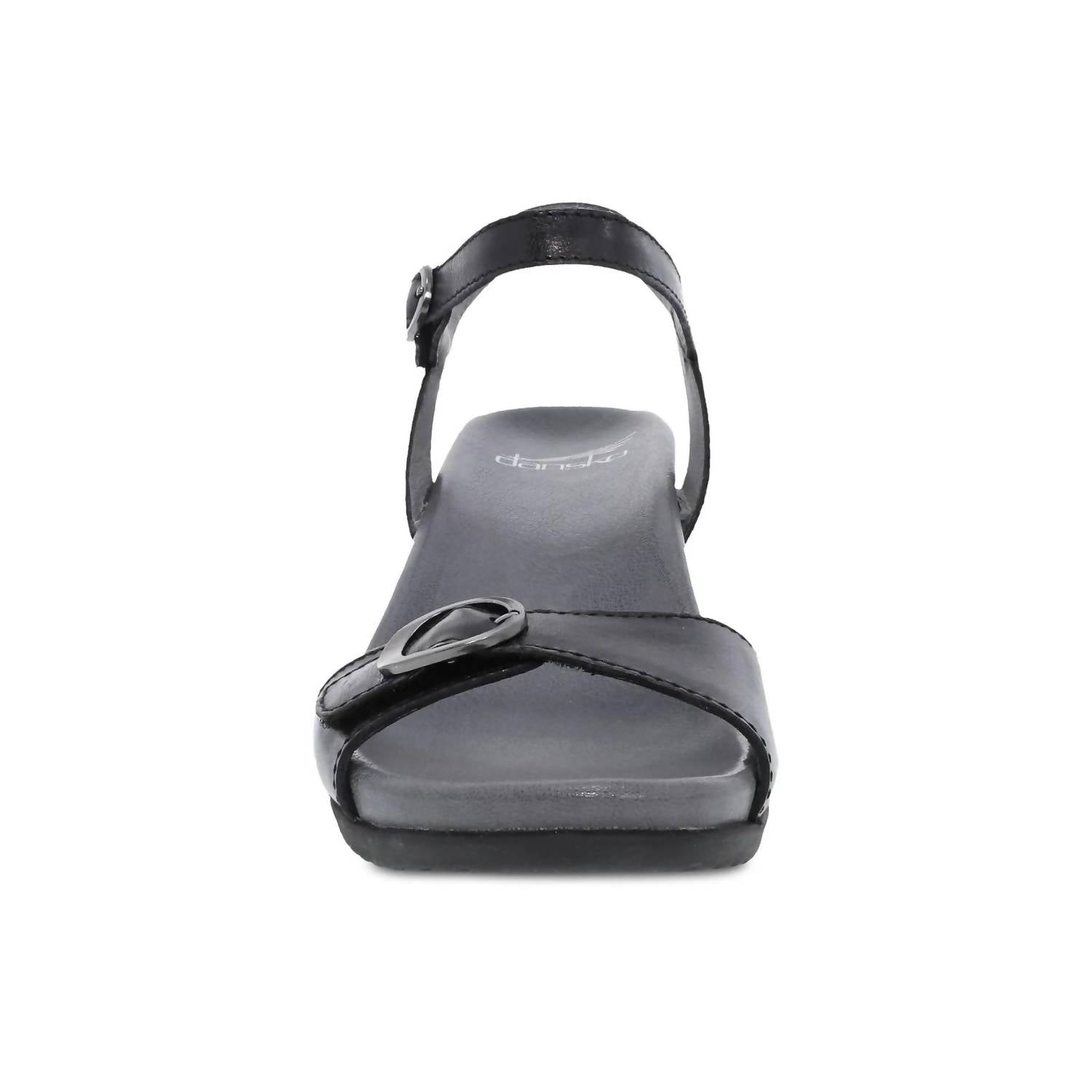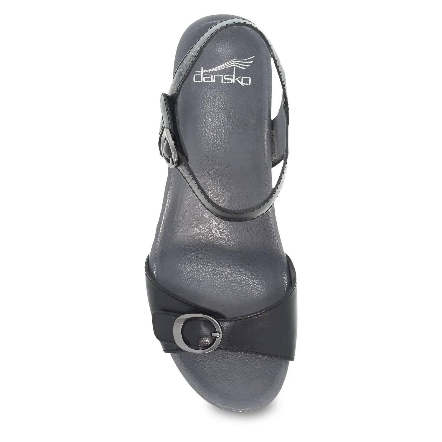 Dresses, denim, shorts... these wedges go with just about anything. Step into timeless elegance with the Women's Arielle Leather Sandal by Dansko, featuring a sophisticated black glazed leather design. This minimalist sandal showcases an open toe and a stylish buckle closure atop a chic wedge heel, perfect for summer celebrations and occasions like anniversaries or Mother's Day. Ideal for the fashion-forward woman, it combines versatility with a medium shoe width to ensure all-day comfort. Elevate your wardrobe with this classy summer staple.