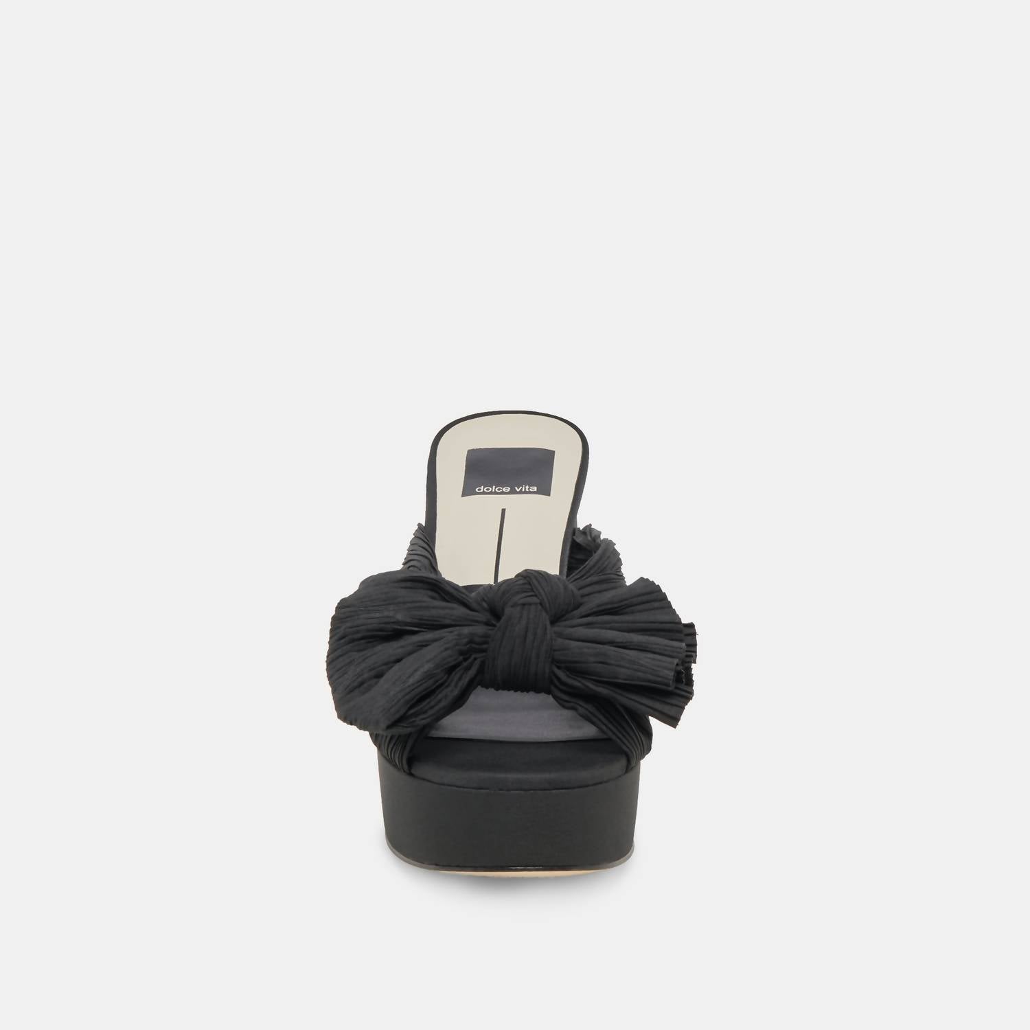 A altura perfeita para o dia e para a noite. Descubra as Sandálias de Salto Blare Femininas Dolce Vita, uma escolha deslumbrante para qualquer ocasião elegante. Confeccionadas com cabedal têxtil e solado de couro, estas sandálias apresentam um bico aberto elegante e uma plataforma moderna. Seu atraente tecido de cetim ônix é plissado e adornado com um laço marcante. Com salto bloco alto de 8,9 cm e plataforma de 3 cm, elas são perfeitas para adicionar um toque de elegância ao seu look.