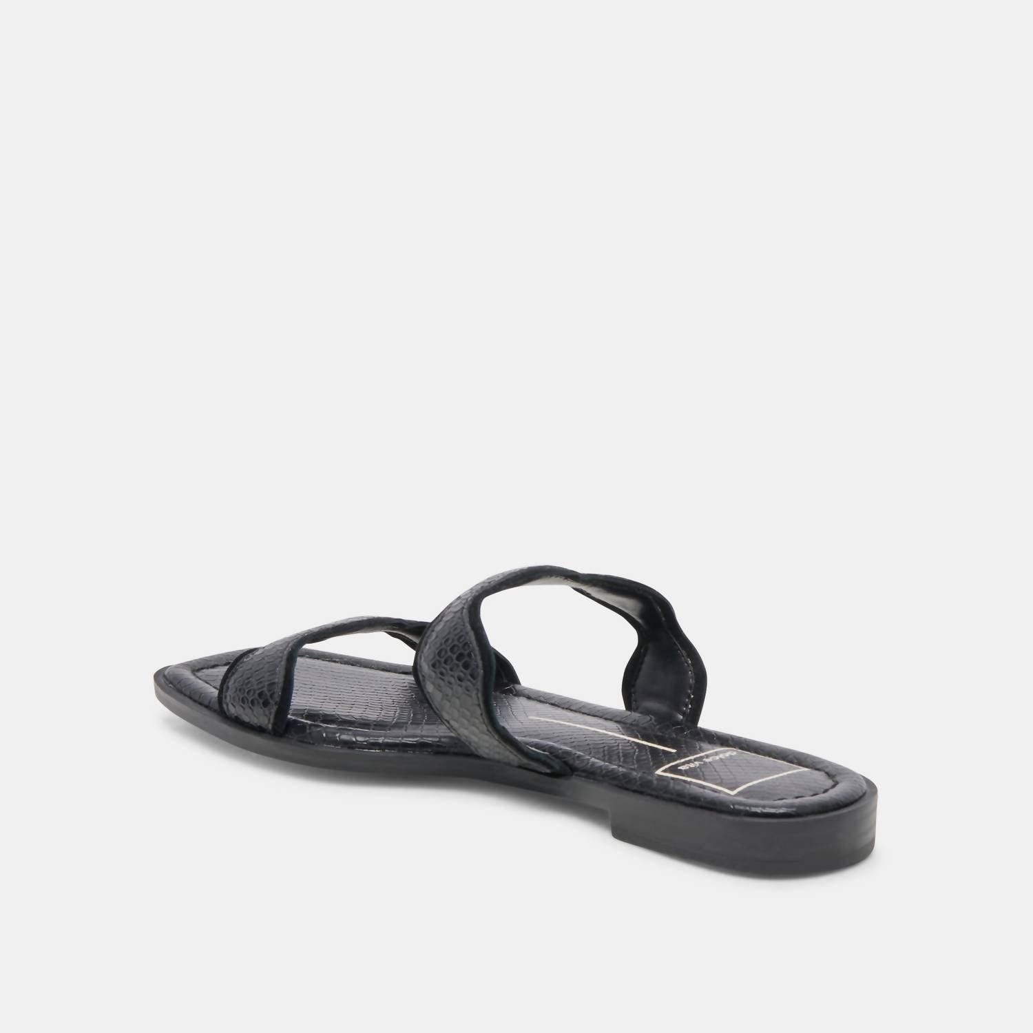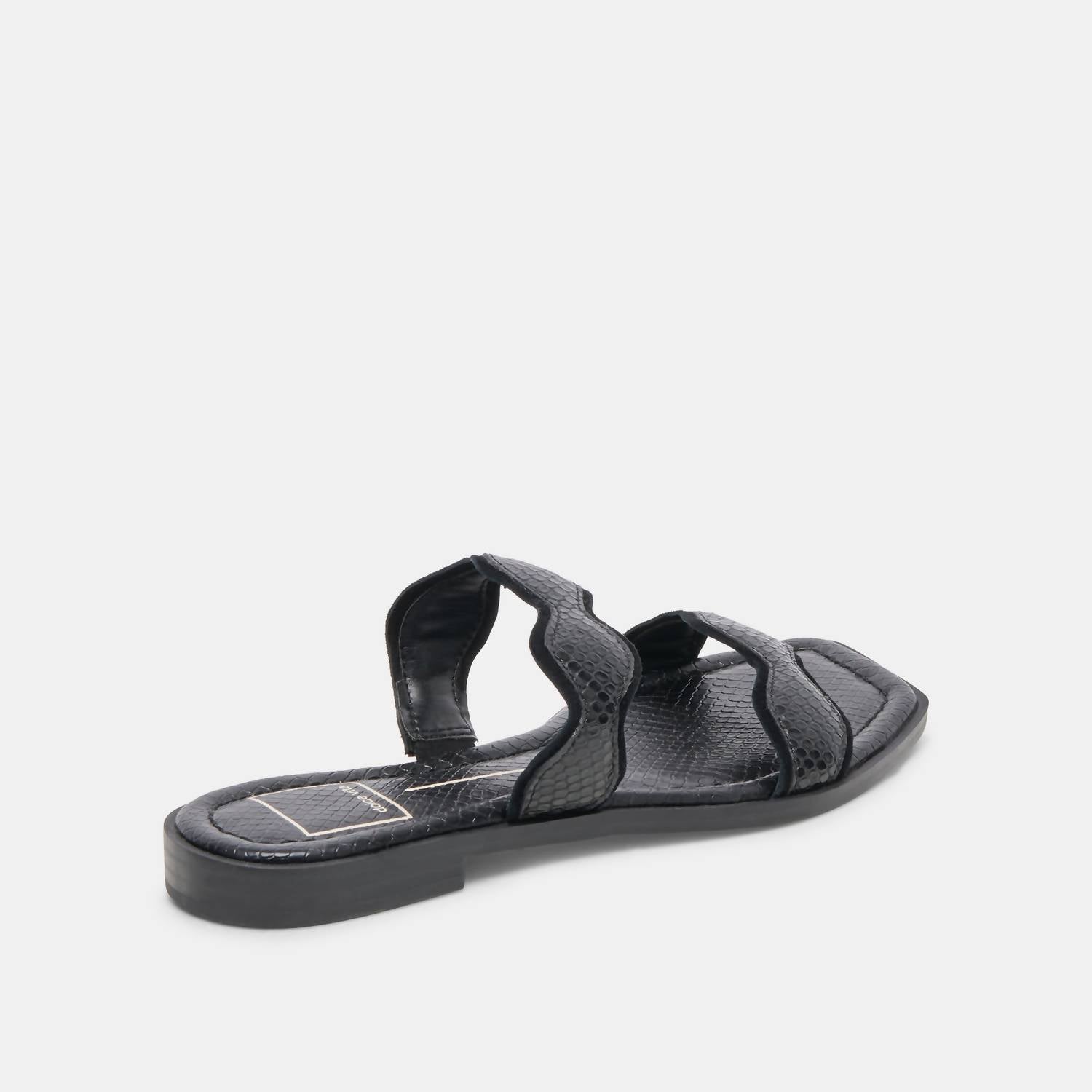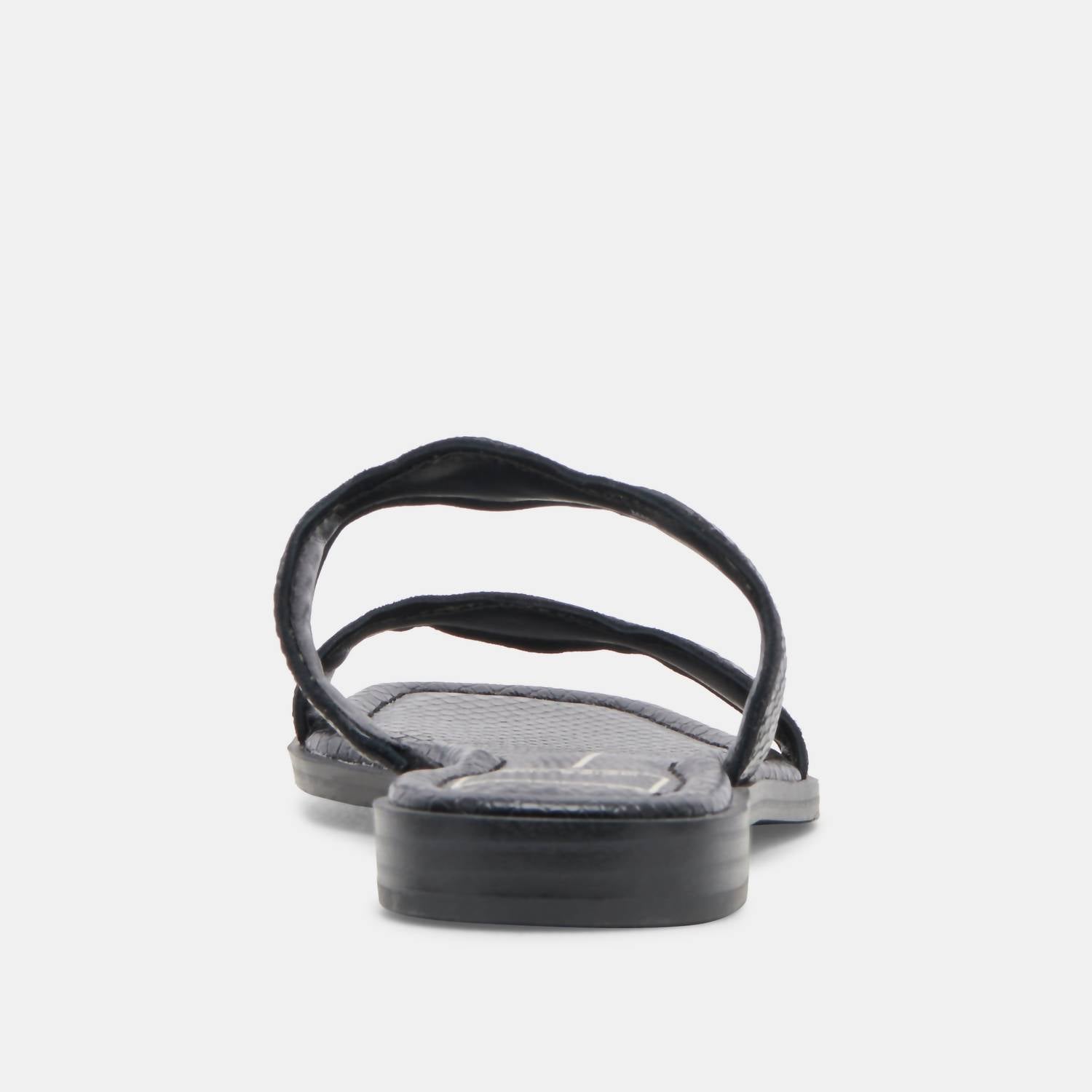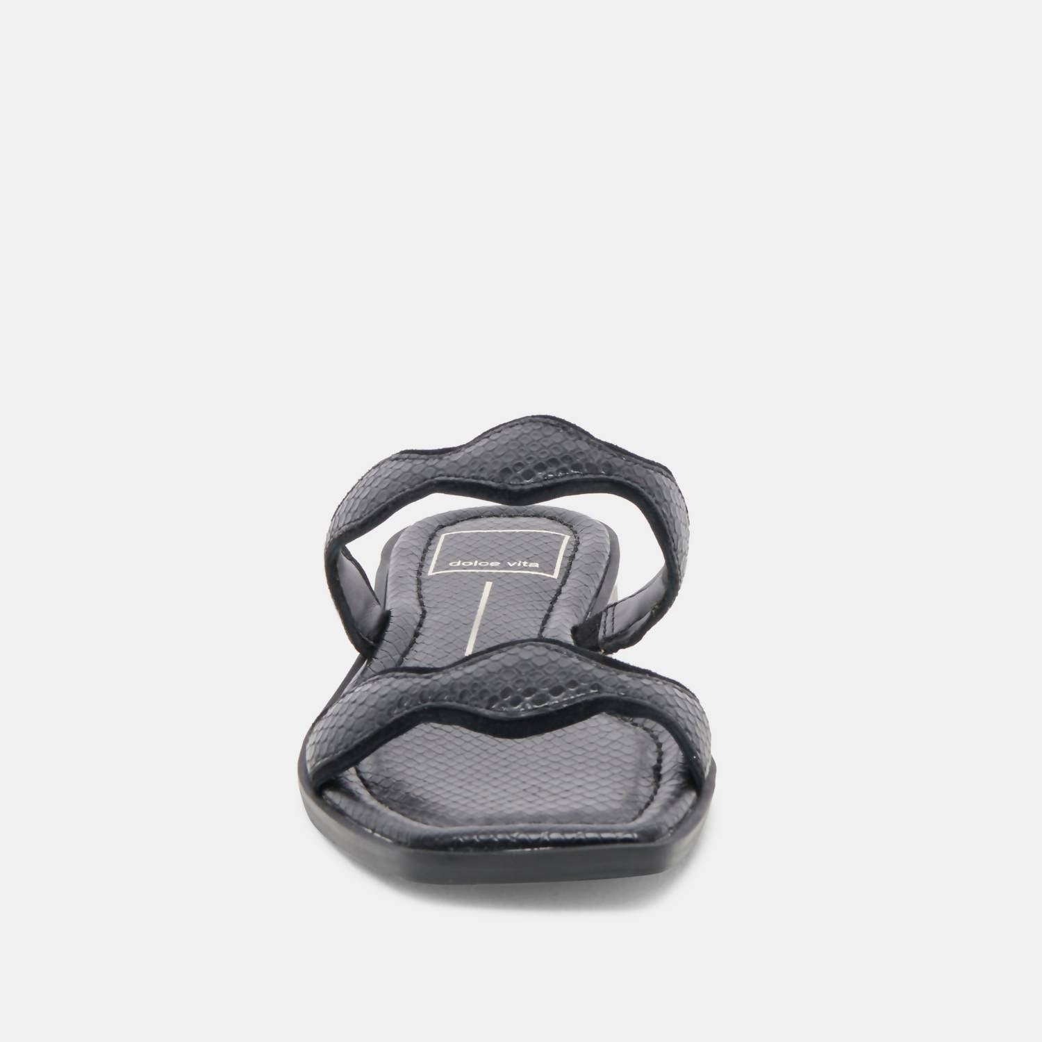 Descubra as Sandálias Femininas Ilva Low da Dolce Vita em couro ônix com relevo, perfeitas para adicionar estilo a qualquer look de verão. Estas sandálias apresentam um design aberto nos dedos e tiras recortadas para um toque mais elegante. Confeccionadas com cabedal em couro e solado sintético reciclado, elas oferecem um forro em couro alternativo à base de água e um salto plano confortável de 2 cm. Importadas e projetadas para versatilidade, estas sandálias são ideais para viagens ou para marcar presença no Dia das Mães.