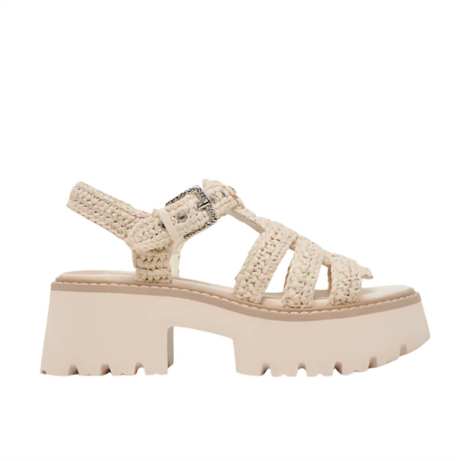 Clássico e fofo, perfeito para usar o dia todo. Adoramos esta sandália. Apresentamos a Sandália Feminina Latice da Dolce Vita, onde o estilo encontra a sustentabilidade com um design robusto e de tiras feito com materiais reciclados. O cabedal em ráfia sintética combina perfeitamente com um forro e palmilha em couro alternativo à base de água, oferecendo elegância ecológica. Com plataforma de 4,8 cm e salto bloco de 5,8 cm, estas sandálias em malha canelada são perfeitas para a primavera, incorporando a vibe fashion dos anos 90. Eleve seu guarda-roupa de viagem com estas sandálias imperdíveis de bico redondo, projetadas para uso versátil.