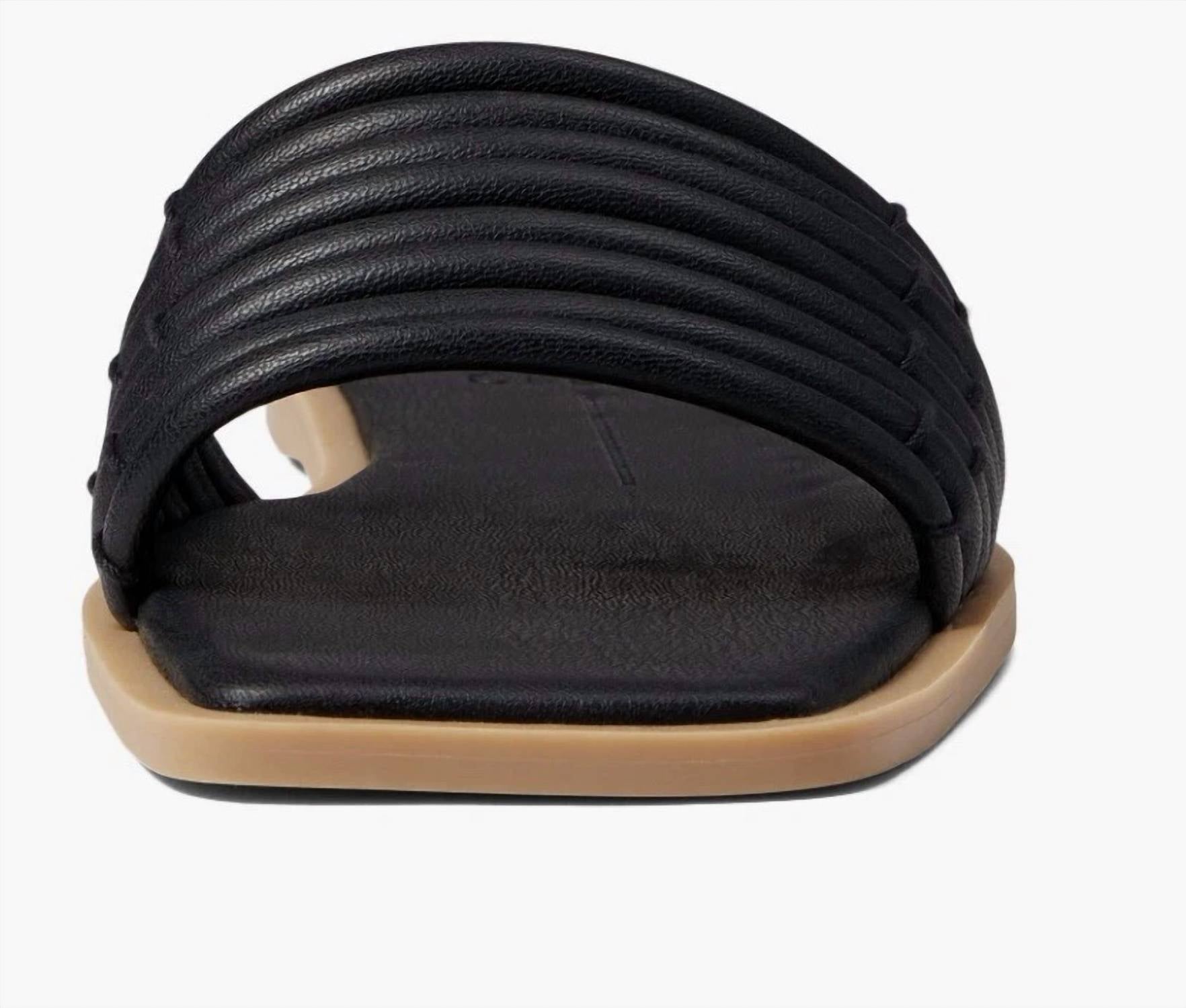 Esta sandália vai levar você do brunch ao jantar e a tudo o mais. Entre no estilo com as sandálias rasteiras femininas Nyx Stella da Dolce Vita, projetadas para a mulher moderna que valoriza a estética e a ética. Com bico aberto e oito tiras distintas, estas sandálias pretas oferecem um efeito canelado exclusivo que adiciona textura e interesse visual. Confeccionadas em couro sintético à base de água e forradas com material reciclado, elas promovem a sustentabilidade sem comprometer o estilo. Com salto plano e solado reciclado, estas sandálias são perfeitas para um dia de praia ou um passeio de verão, tornando-as uma adição versátil à sua coleção de streetwear.