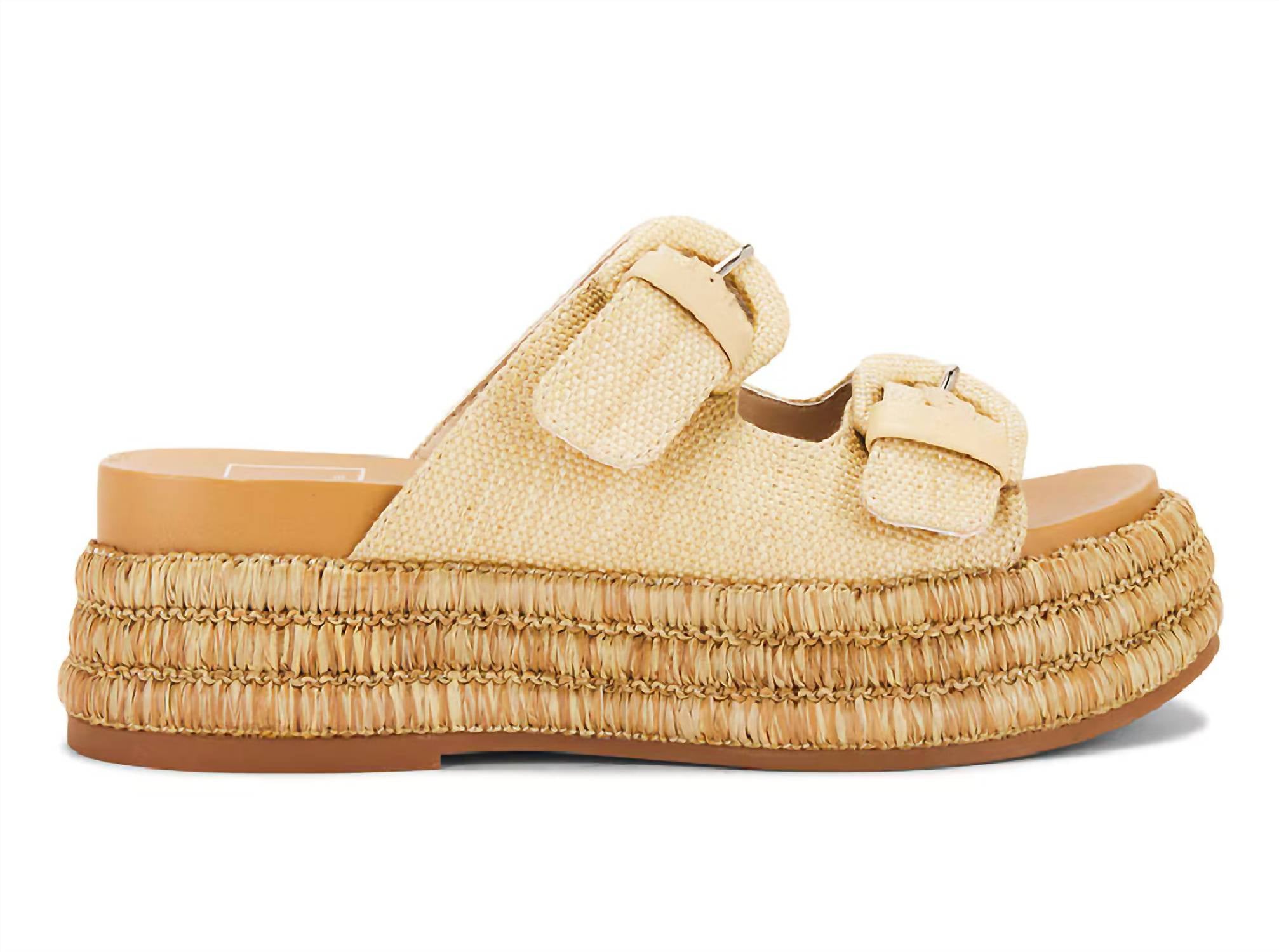 This sandal will take you from brunch to dinner and everything in between. Elevate your summer style with Dolce Vita's Women's Witny Sandal, a perfect blend of utility and flair. These beige sandals feature an open toe design with a chic 1.5-inch platform heel for that Boho Chic vibe. Crafted with a textile upper, they include adjustable buckles for a custom fit. Ideal for vacation outings, these sandals promise both comfort and style in one dynamic package.