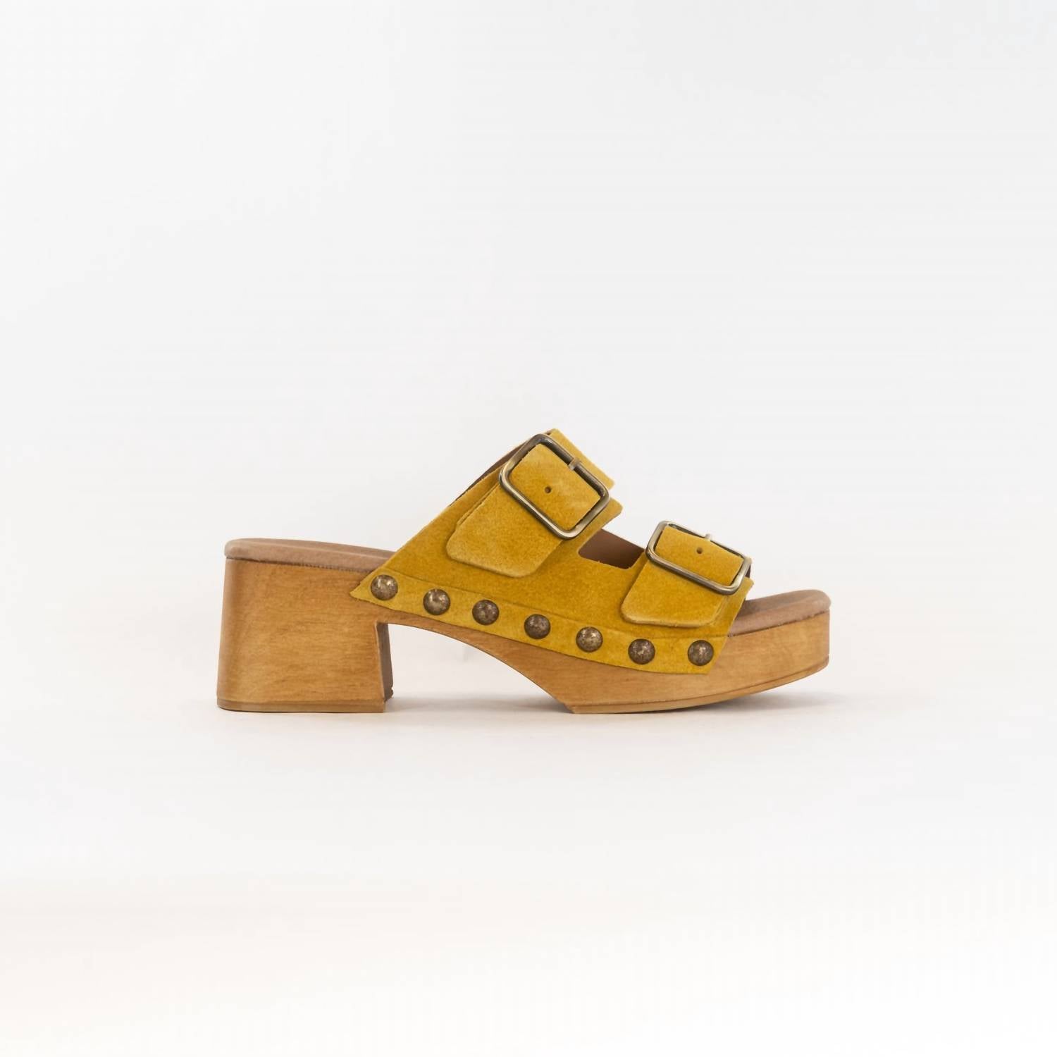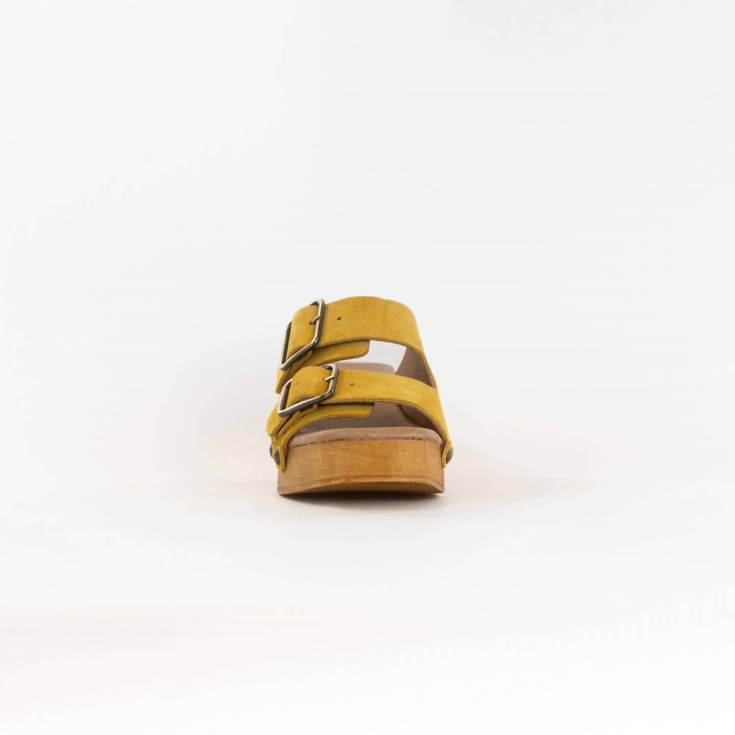 Esta sandália vai te acompanhar do brunch ao jantar e a todos os momentos. Mules abertos na frente. Duas tiras largas. Fivela quadrada grande. Tiras macias. Solado robusto de madeira. Salto Bock, também de madeira.