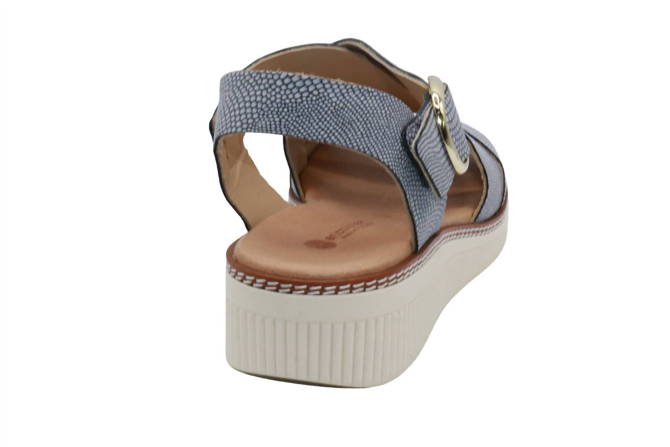 This sandal will take you from brunch to dinner and everything in between. Step into style with the Women's Khloe Leather Sandals by Eric Michael, perfectly crafted for versatile elegance. Made in Spain, these sandals feature genuine leather with wide crossover straps and a cushioned leather footbed, ensuring ultimate comfort. The adjustable buckle strap combines with Velcro for a secure fit, while the flexible platform sole provides a subtle lift with a low wedge heel of 1 1/4"-2". Ideal for both casual outings and dinner parties, these sandals capture the essence of '90s fashion.