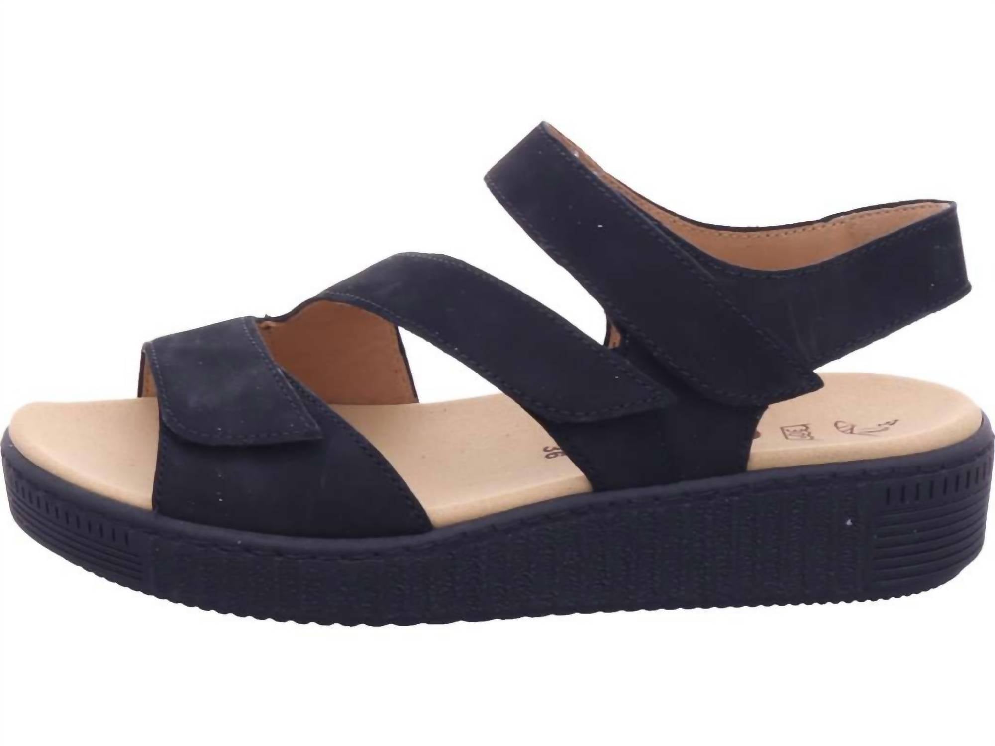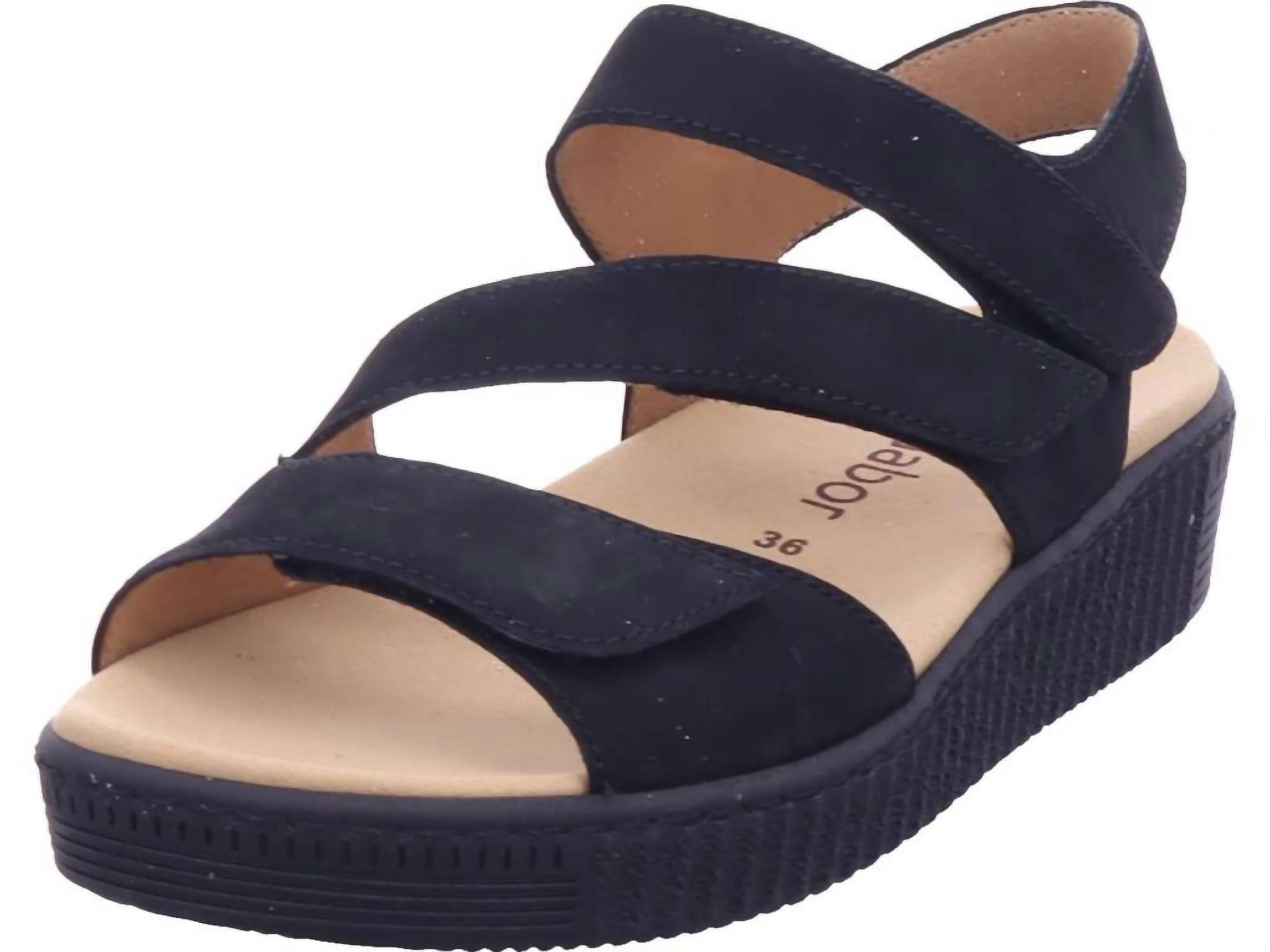 Classicly cute and all-day-wearable. We love this sandal. Embrace minimalist style with the Gabor Women's 23.600.17 Soft Nubuck Sandal in chic black. Crafted with nubuck leather and featuring genuine leather lining for added comfort, these sandals showcase a wide fit with a comfortable 3 cm wedge heel. The easy-to-use Velcro closure ensures a secure fit, while the plastic PU sole offers durability. Perfect for summer dinner parties, these sandals highlight an open toe design and are ideal for standing out with understated elegance.
