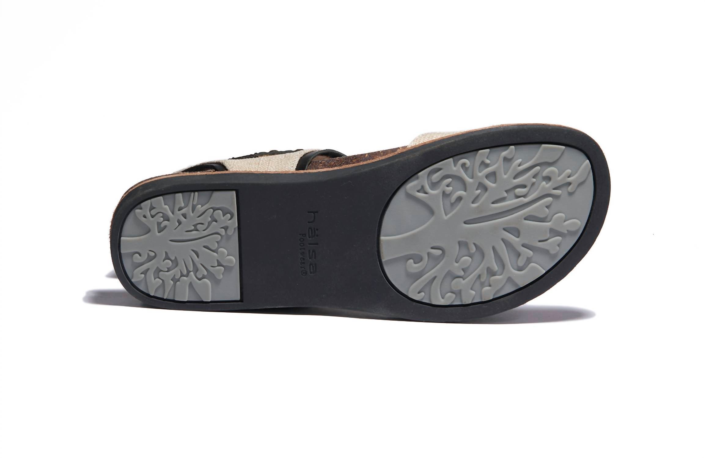 Esta sandália vai levar você do brunch ao jantar e a tudo o mais. Entre no verão com a Sandália Feminina Bari da Halsa Footwear, uma combinação perfeita de couro e linho para um visual boho chic. Esta sandália possui tira ajustável no tornozelo com fecho de fivela e palmilha confortável de cortiça para uso o dia todo. Com cabedal em couro e tecido, forro em couro e solado de borracha, ela é projetada com tecnologia antimicrobiana para garantir conforto fresco e seco. Aposte no estilo importado e eleve seus looks de férias com este design de bico redondo e salto baixo em tons clássicos de preto e natural.