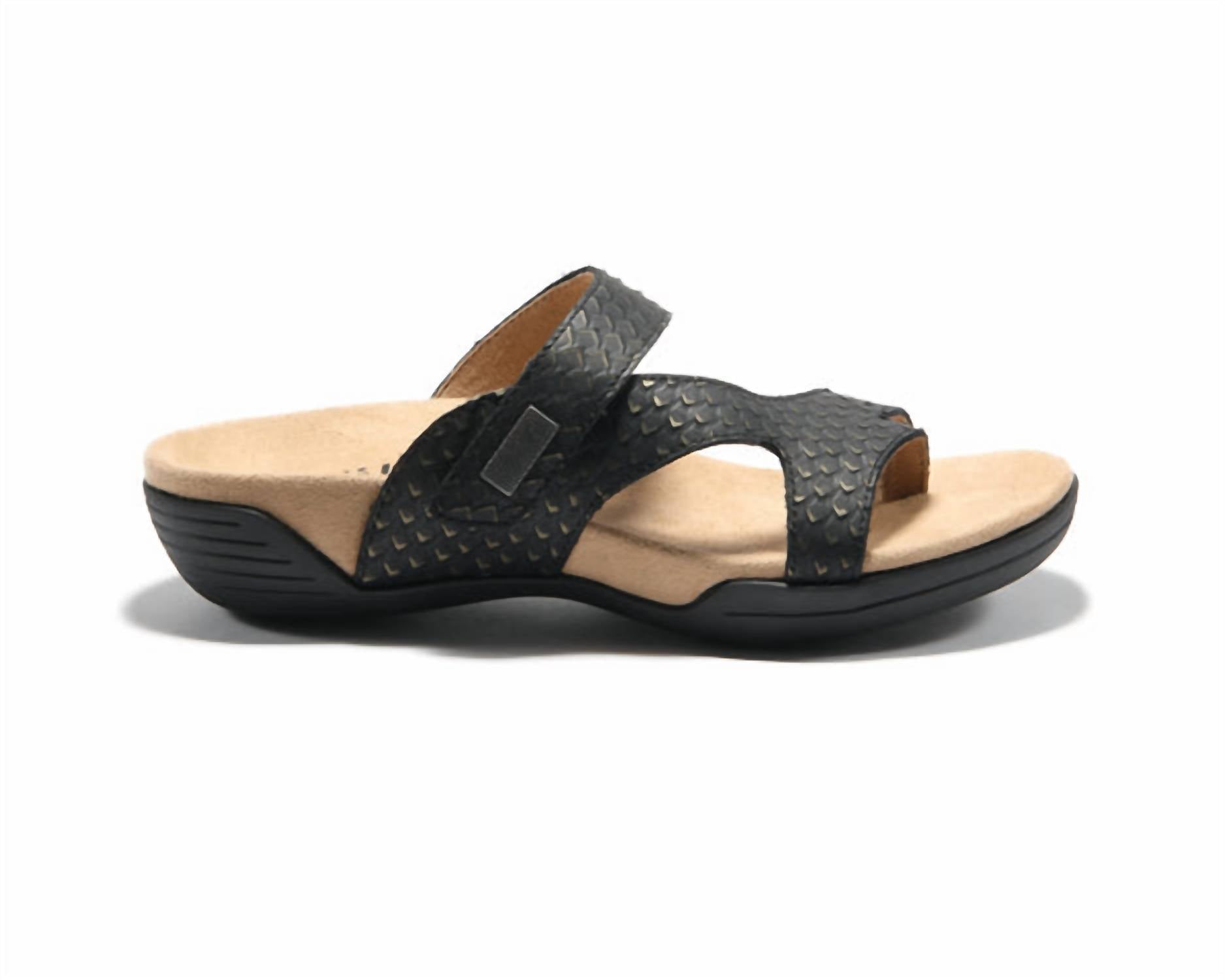 Apresentamos as Sandálias Femininas Darline da Halsa Footwear, a combinação perfeita de estilo e conforto para o seu guarda-roupa de clima quente. Estas sandálias pretas apresentam cabedal em couro macio com tira ajustável em velcro no peito do pé para um ajuste seguro. Com a Tecnologia Equilibrium +, que proporciona suporte semelhante ao de uma órtese, seus pés permanecem alinhados corretamente, enquanto a entressola leve absorve o impacto para reduzir o estresse nos pés, tornozelos e joelhos.