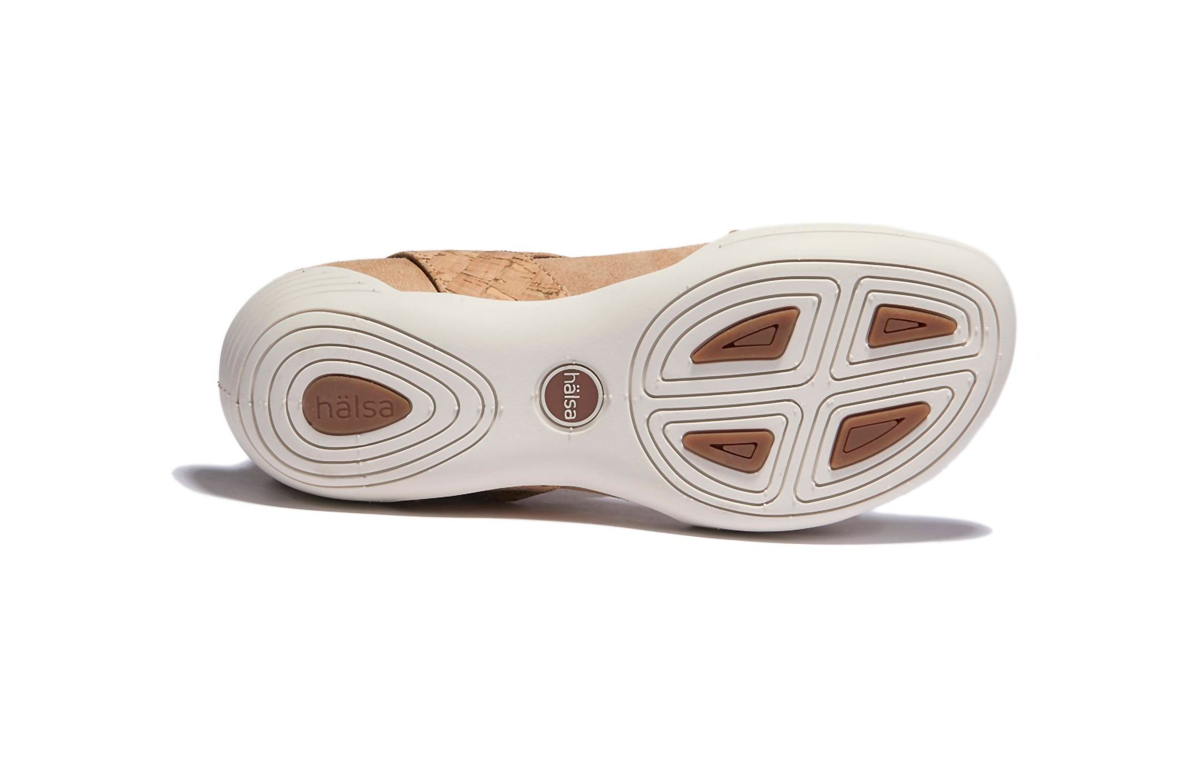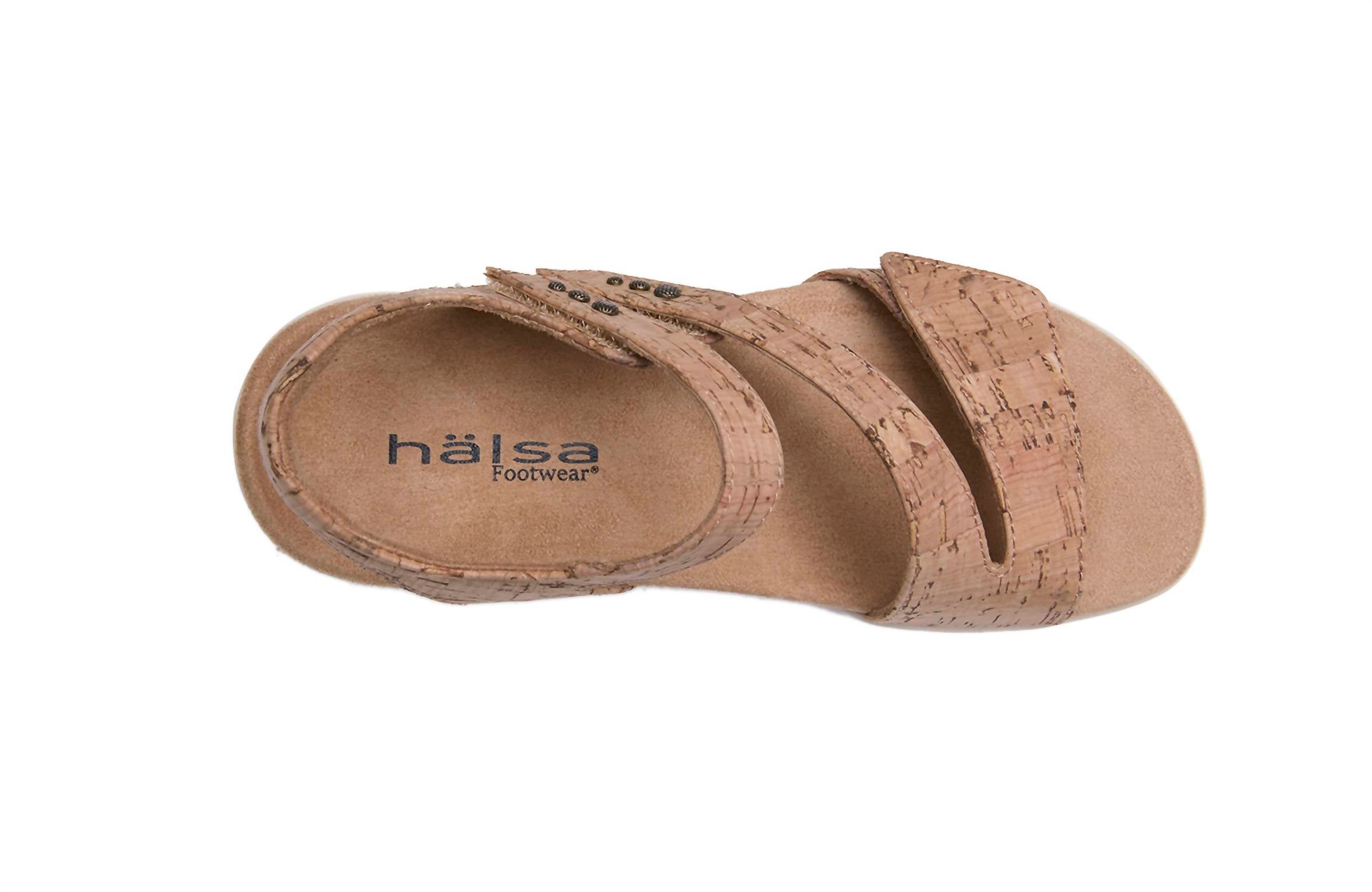 Entre em sintonia com conforto e estilo com a sandália feminina Halsa Footwear Denia com tira no tornozelo, em um elegante tom de cortiça. Projetadas com tiras ajustáveis de velcro, estas sandálias oferecem um ajuste seguro, enquanto o salto plataforma de 3,8 cm garante conforto durante todo o dia. Seu cabedal em couro é complementado por uma palmilha acolchoada de EVA com suporte para o arco do pé e acabamento antimicrobiano para manter os odores longe. Importadas e criadas para as férias ensolaradas, estas sandálias oferecem praticidade e elegância para qualquer ocasião de primavera.