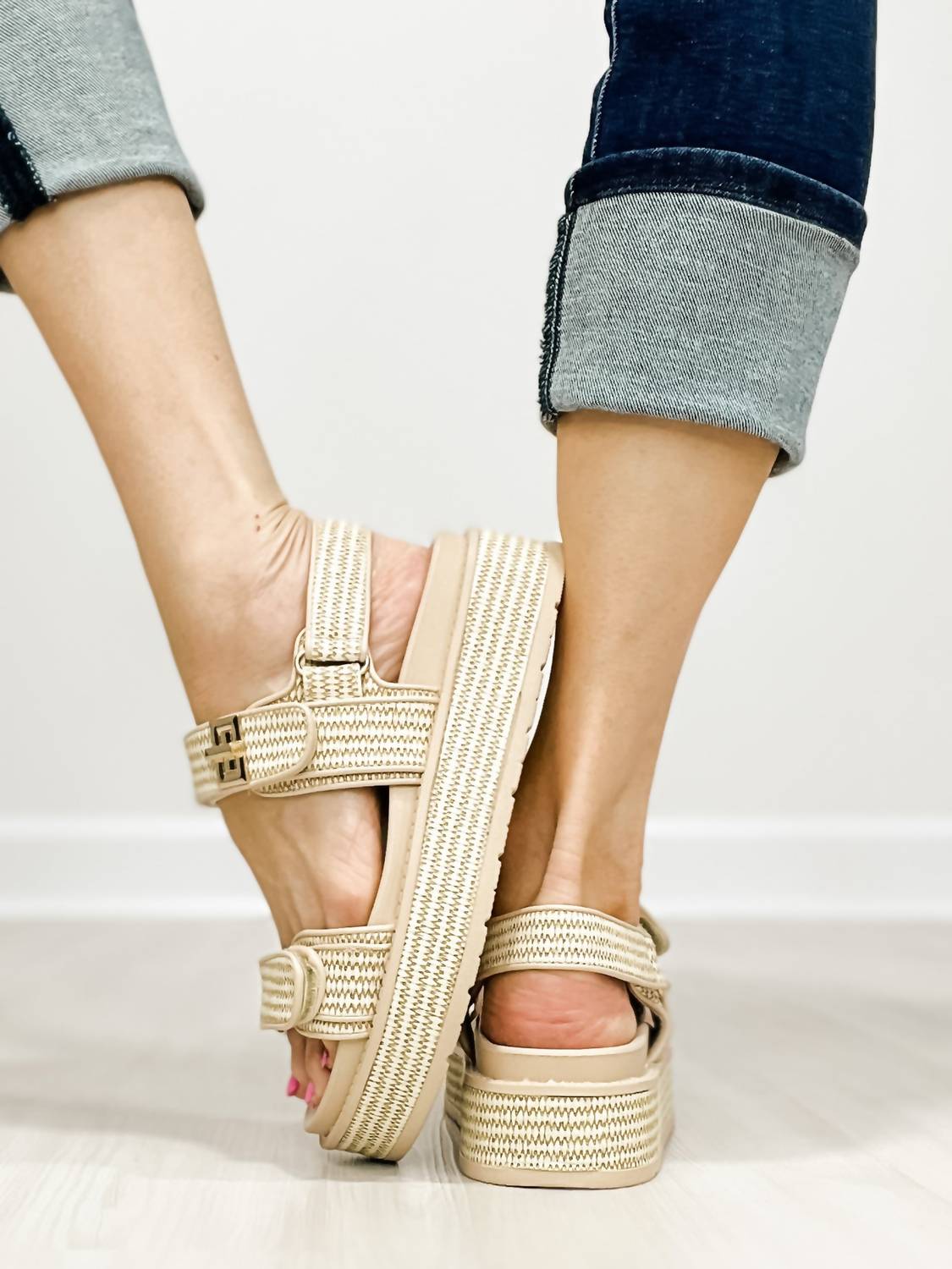 Classicly cute and all-day-wearable. We love this sandal. Step into the season with the Women's Go For It Platform Sandal from Hey Girl by Corkys, a vibrant choice for any summer adventure. These sandals feature an open toe design that's perfect for a boho chic vibe. Ideal for vacation settings, this statement footwear pairs effortlessly with any outfit for an elevated, trend-forward look.