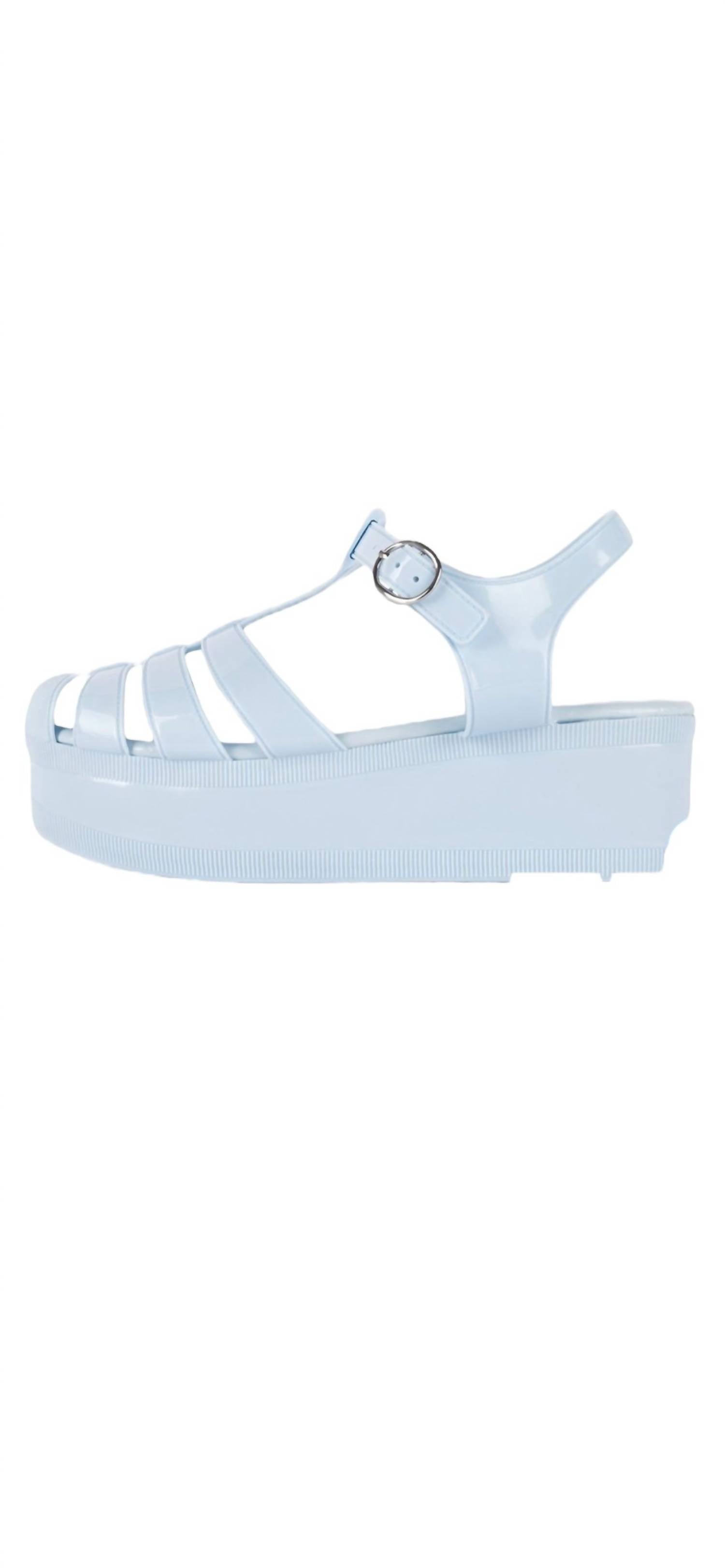 Entre na sofisticação e na descontração com as sandálias femininas Jeffrey Campbell Candied Blue Platform Jelly Y2K. Estas sandálias apresentam uma plataforma texturizada robusta e solado rocker, além de tira ajustável e fecho de fivela para um ajuste perfeito. O design aberto assenta num elegante salto plataforma de 7,6 cm, inteiramente em material sintético, tornando-a a escolha ideal para os dias de praia no verão. Feitas com materiais importados, estas sandálias combinam a tendência Y2K com a praticidade da construção sintética.
