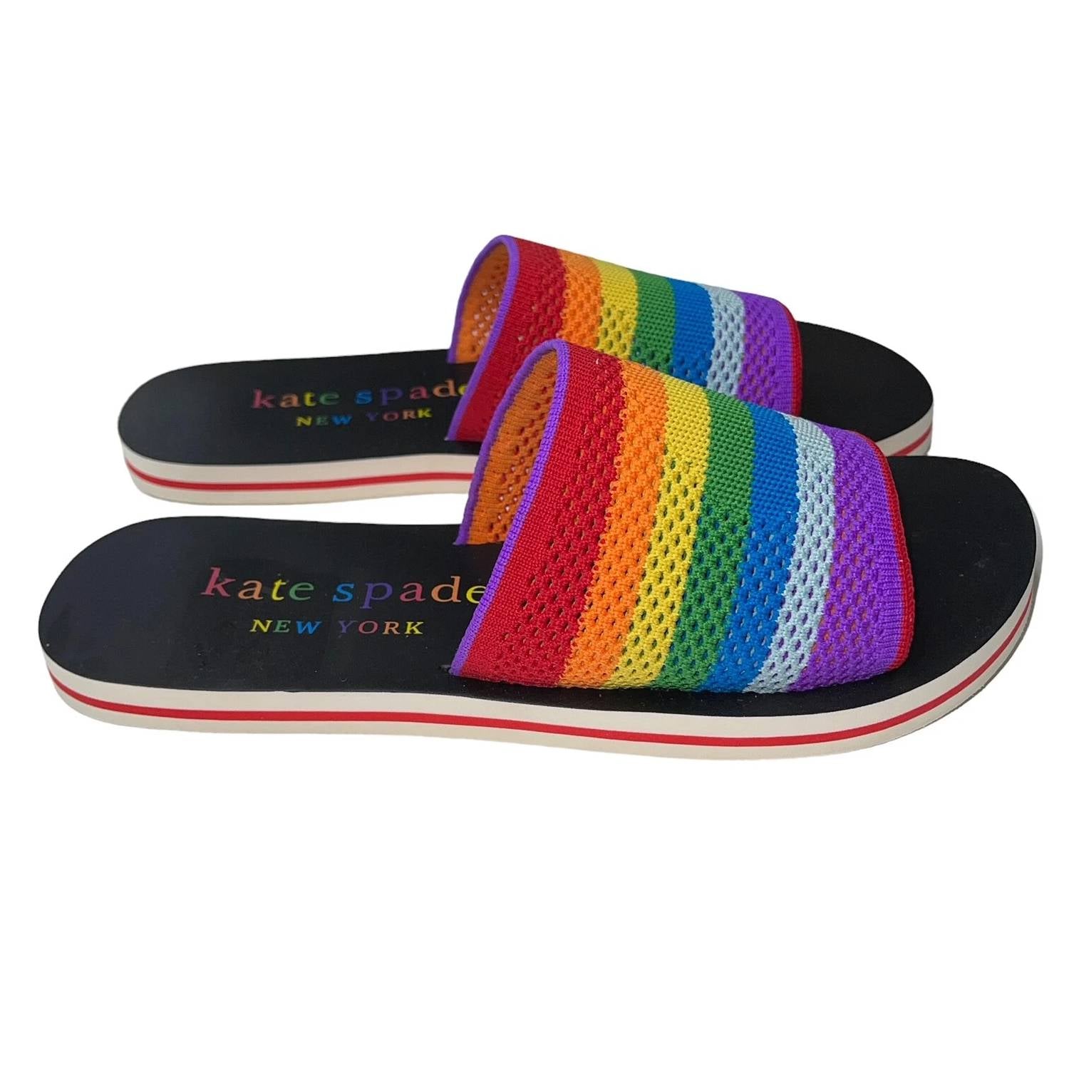 Esta sandália vai levar você do brunch ao jantar e a tudo o mais. Aposte em um estilo vibrante com as sandálias Kate Spade Spectrum Slide, que oferecem um design em malha com detalhes em arco-íris e preto que personifica as tendências do verão. Com bico aberto e salto baixo de menos de 2,5 cm, estas sandálias são as companheiras perfeitas para as férias. Elas são projetadas para mulheres que apreciam um toque do estilo Y2K em seus guarda-roupas casuais e quentes. Confeccionadas com atenção aos detalhes, elas garantem um caminhar confortável e elegante durante toda a estação.